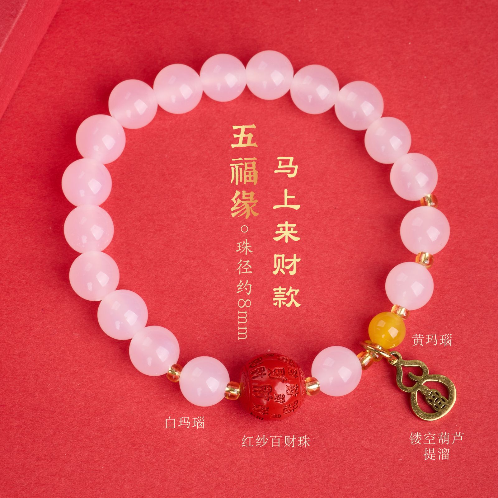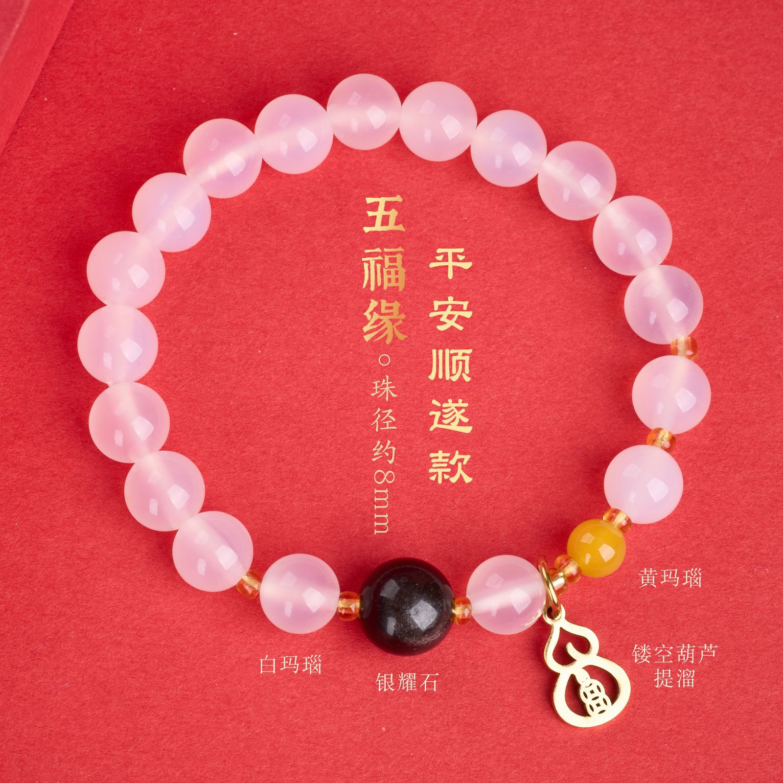 |名称|8MM白玛瑙 银曜石 黄玛瑙 钱币葫芦 手链