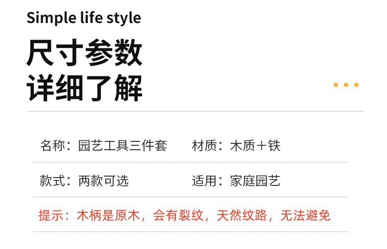 材质: 铁艺 品牌: 愚美人 类型: 三件套 适用场景: 花园 货号: 铲子三件套 是否进口: 否 规格: 细柄铲子三件套,粗柄铲子三件套 主要下游平台: ebay,亚马逊,wish,速卖通,LA 主要销售地区: 欧洲,南美,东南亚,北美,东北亚,中东 有可授权的自有品牌: 是