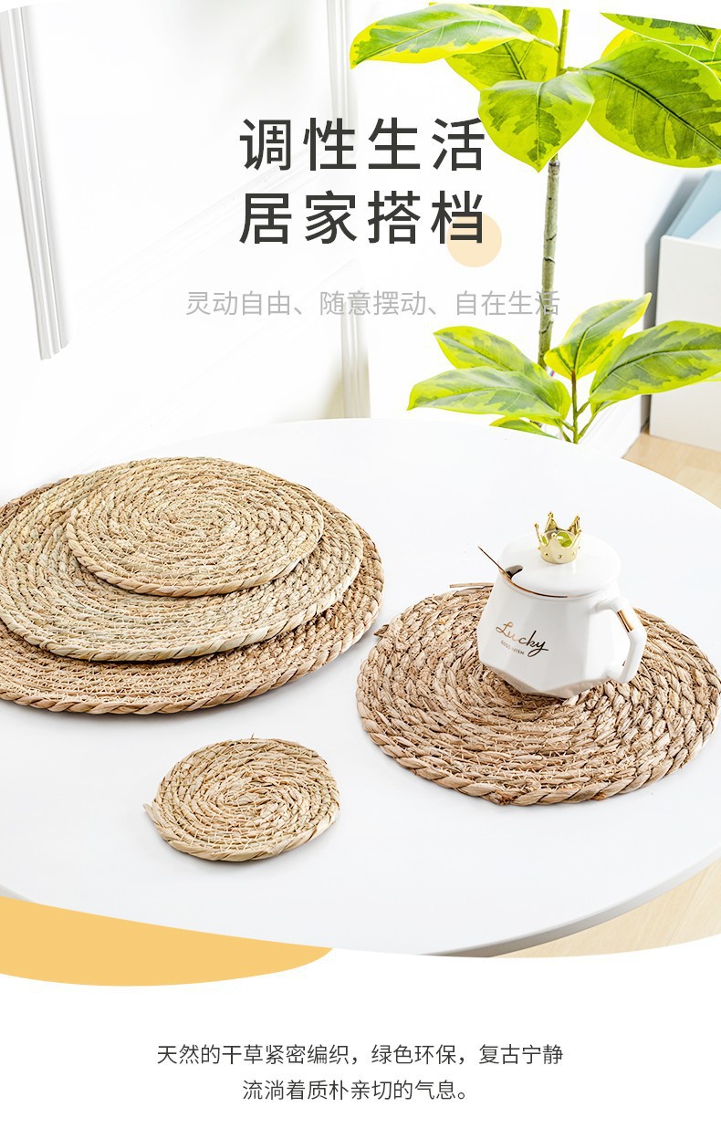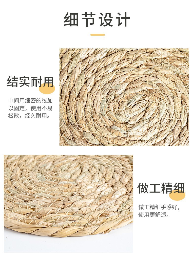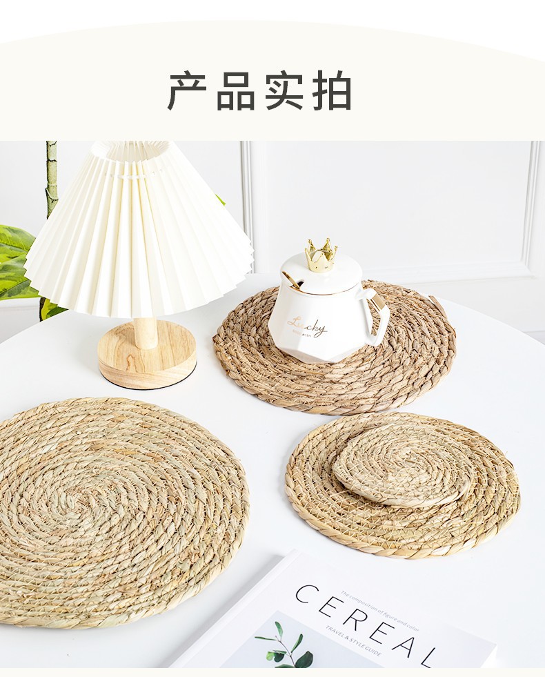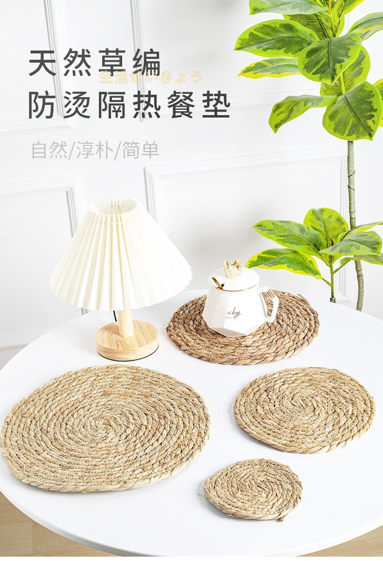 材质: 草编 品牌: 愚美人 形状: 圆形 产品质量等级: 合格品 风格: 田园风 是否进口: 否 货号: 餐桌草编圆垫 图案: 纯色 产品上市时间: 2023 价格段: 5元以内