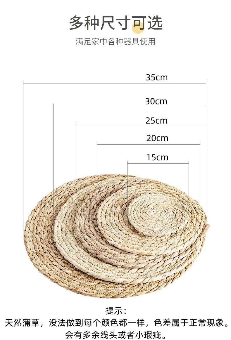 定制编织蒲草编圆垫子餐桌隔热垫家用防烫碗垫创意装饰网红拍照垫 投诉