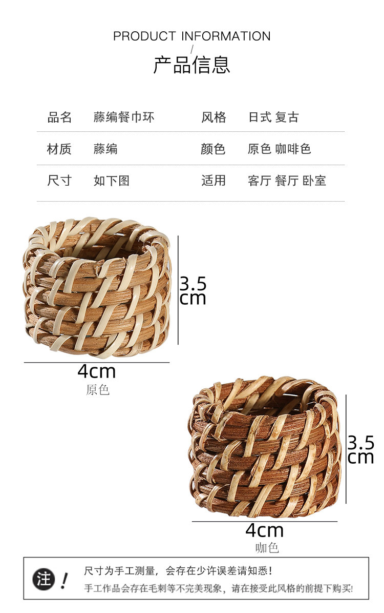 Kens美式西餐扣藤编酒店用品餐巾圈餐巾环口布圈样板间饰品 English | 投诉