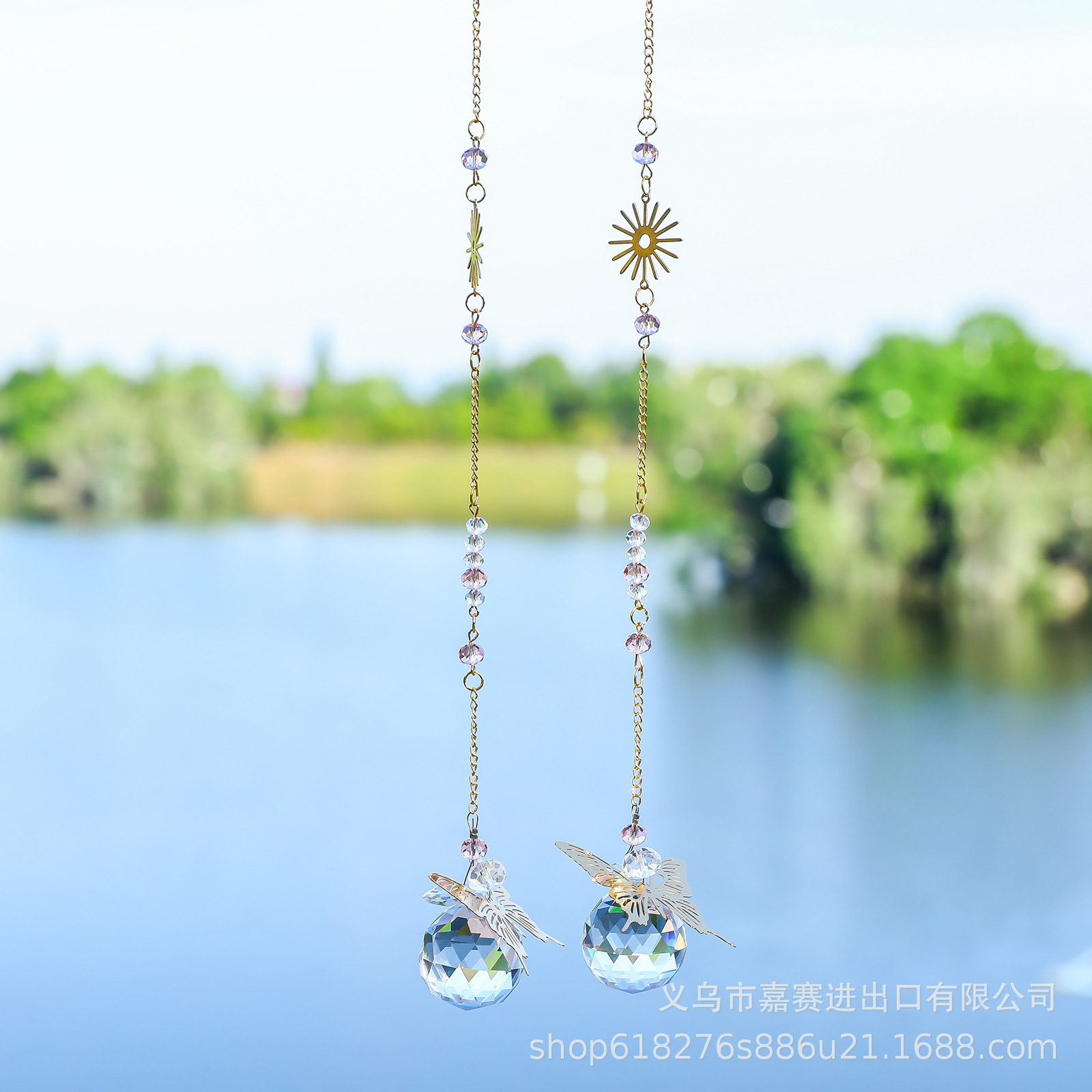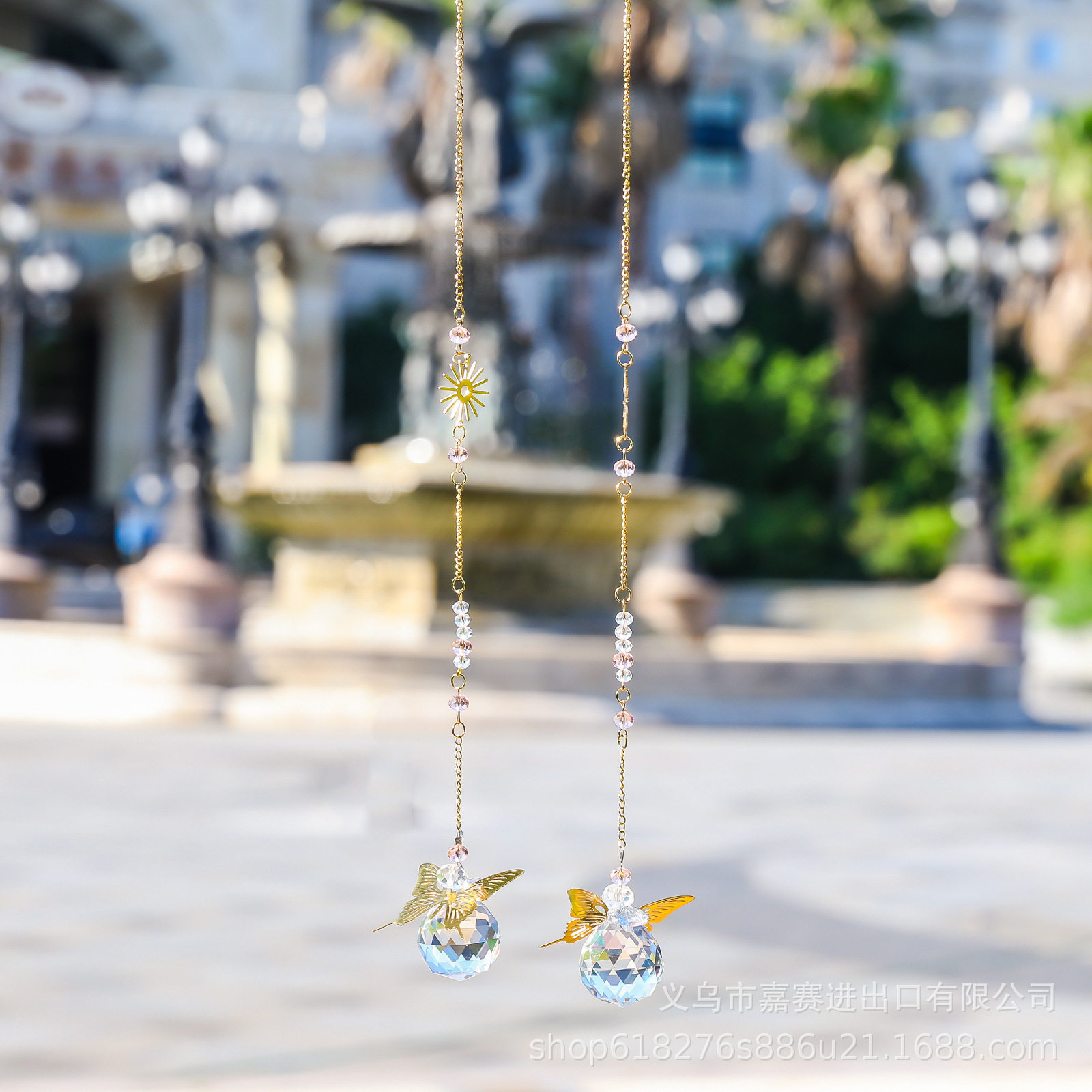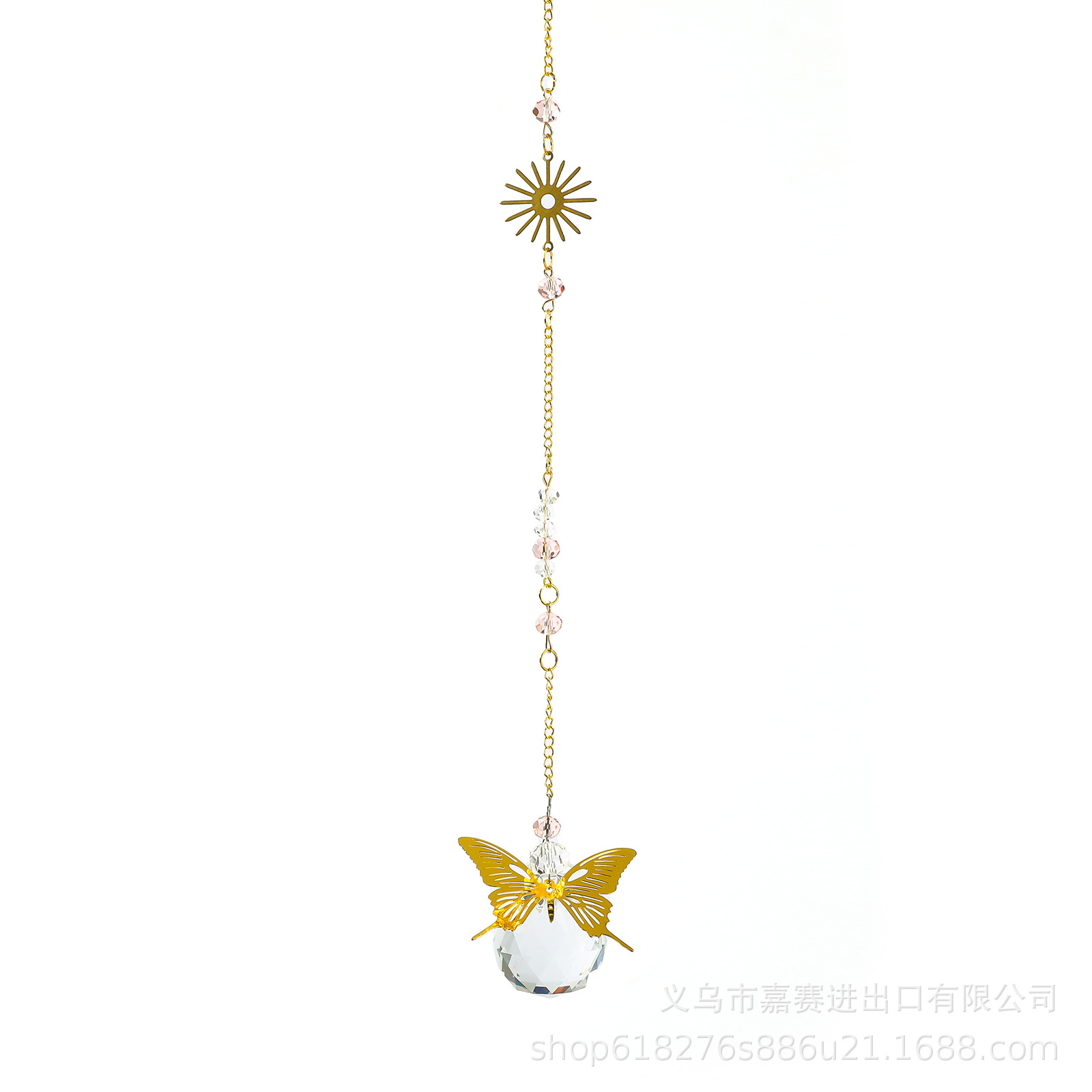 太阳捕手蝴蝶飞飞金色镂空复古亚马逊跨境货源园艺工艺品水晶挂件