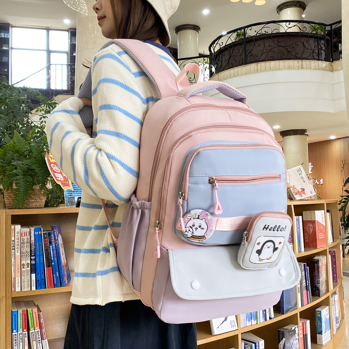 跨境双肩包初高中时尚撞色透气书包学生背包女包韩版休闲百搭新品 English | 投诉