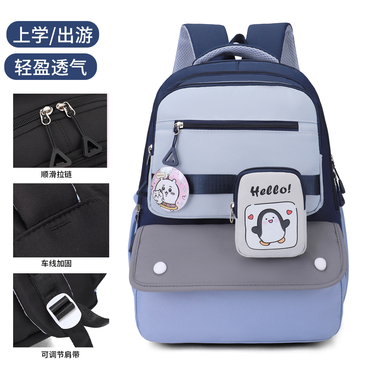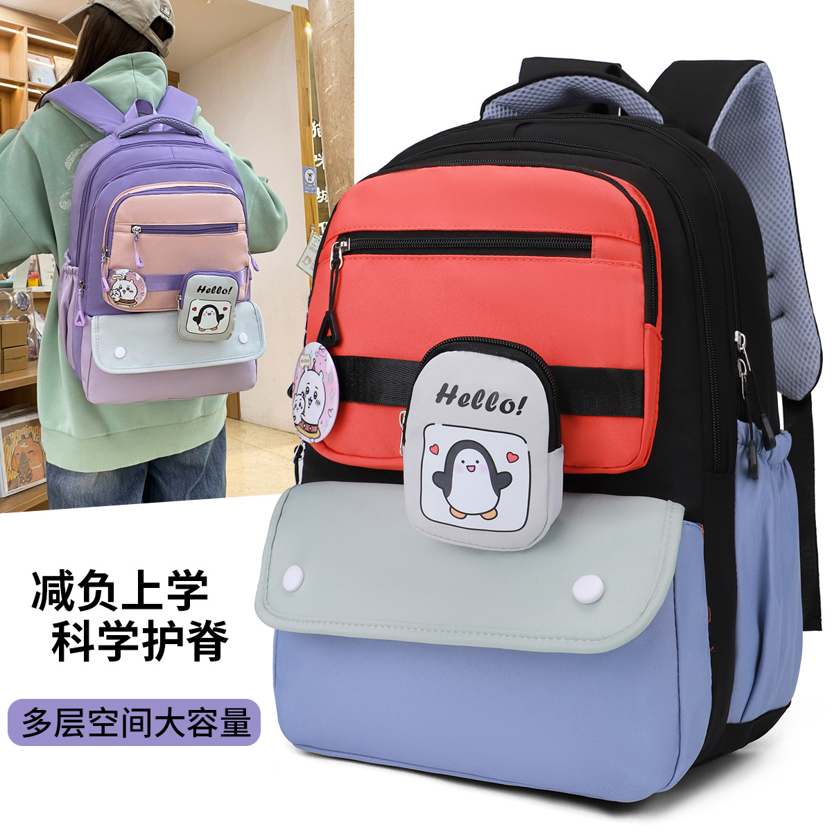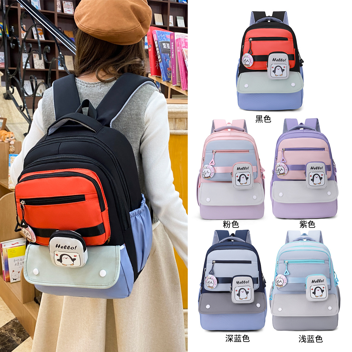 材质: 牛津布 里料质地: 涤纶 功能: 透气 风格: 青春校园 开盖方式: 拉链 品牌: 鑫沃隆 流行元素: 印花,撞色 颜色: 黑色,粉红色,天蓝色,红色,紫色 货号: 529 上市年份季节: 2025年春季 包内部结构: 电脑插袋 硬度: 中偏软 外袋种类: 内贴袋 有可授权的自有品牌: 是 有无夹层: 有 适用场景: 学校教育 包大小: 中 重量: 0.45 kg/个