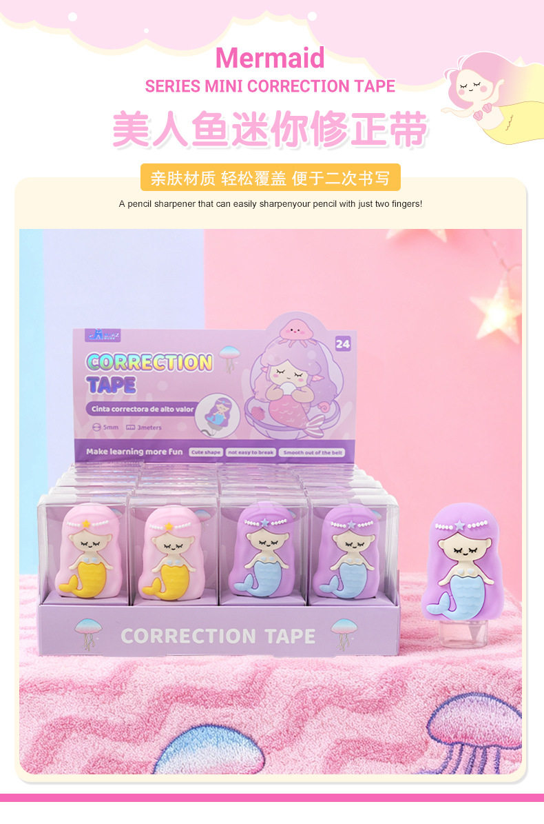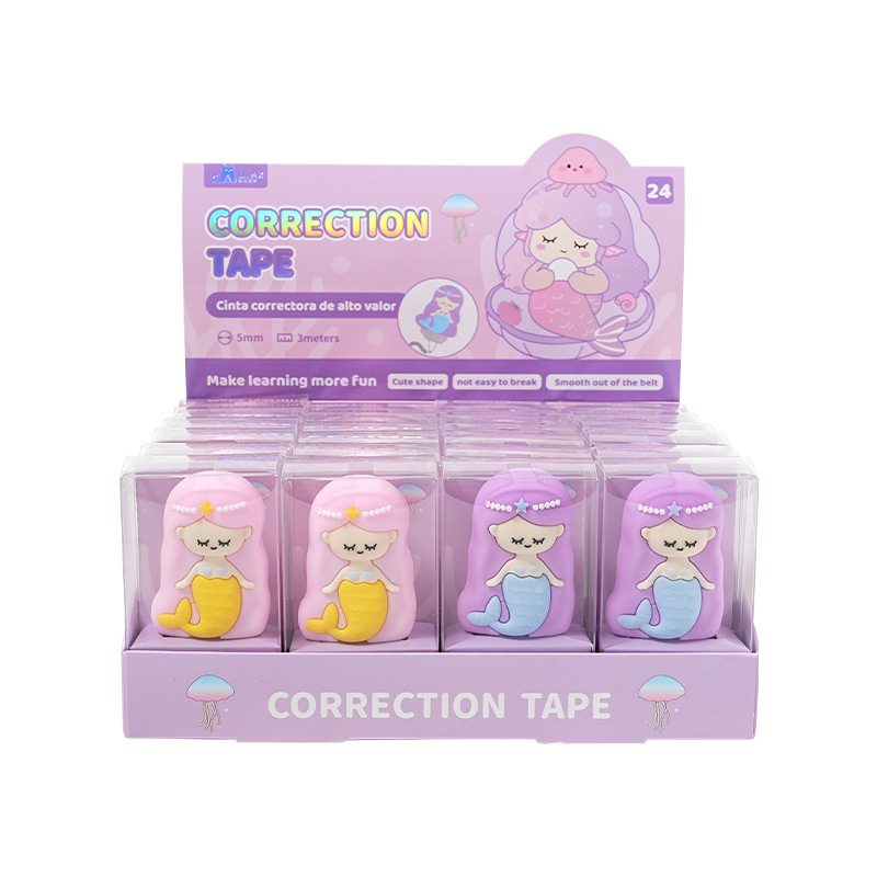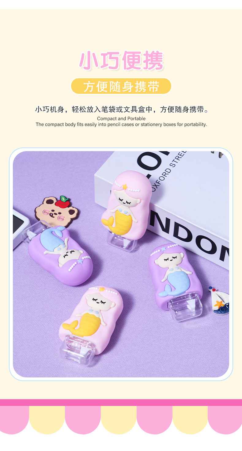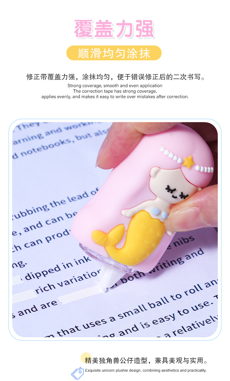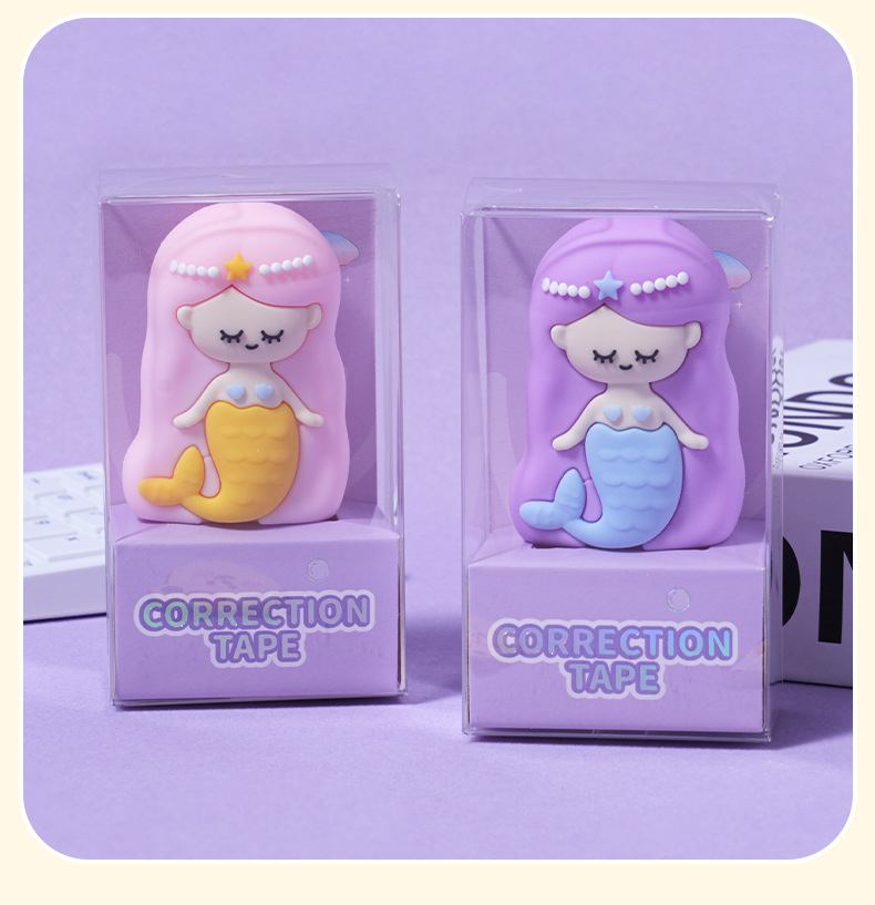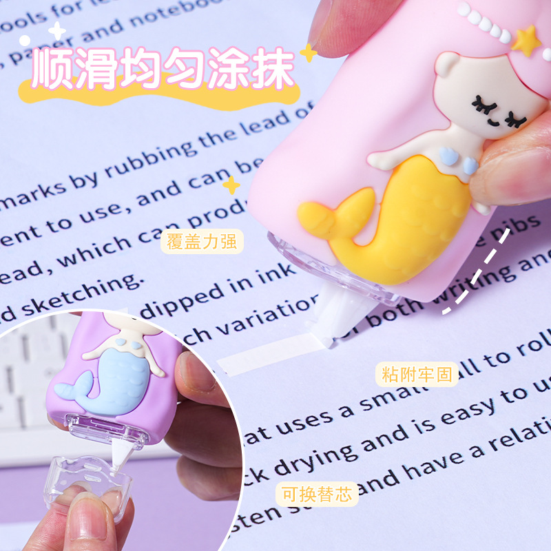 热销高颜值卡通精美美人鱼儿童修正带创意设计 学生文具厂家批发
