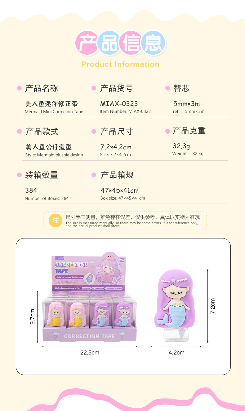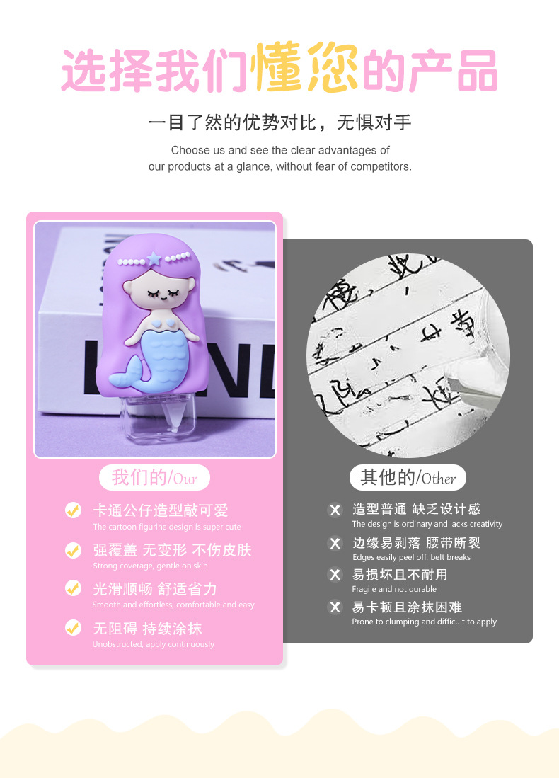 热销高颜值卡通精美美人鱼儿童修正带创意设计 学生文具厂家批发 投诉