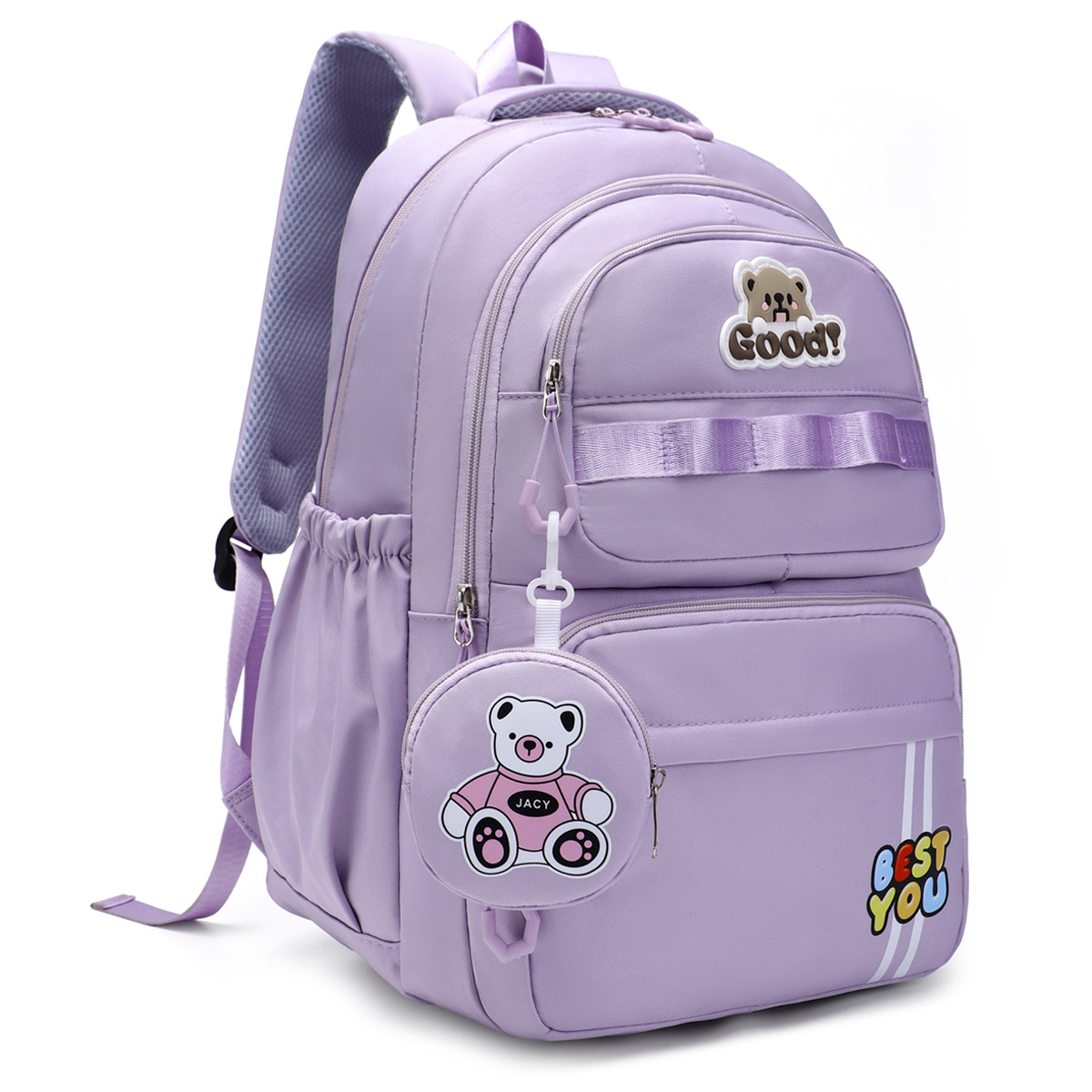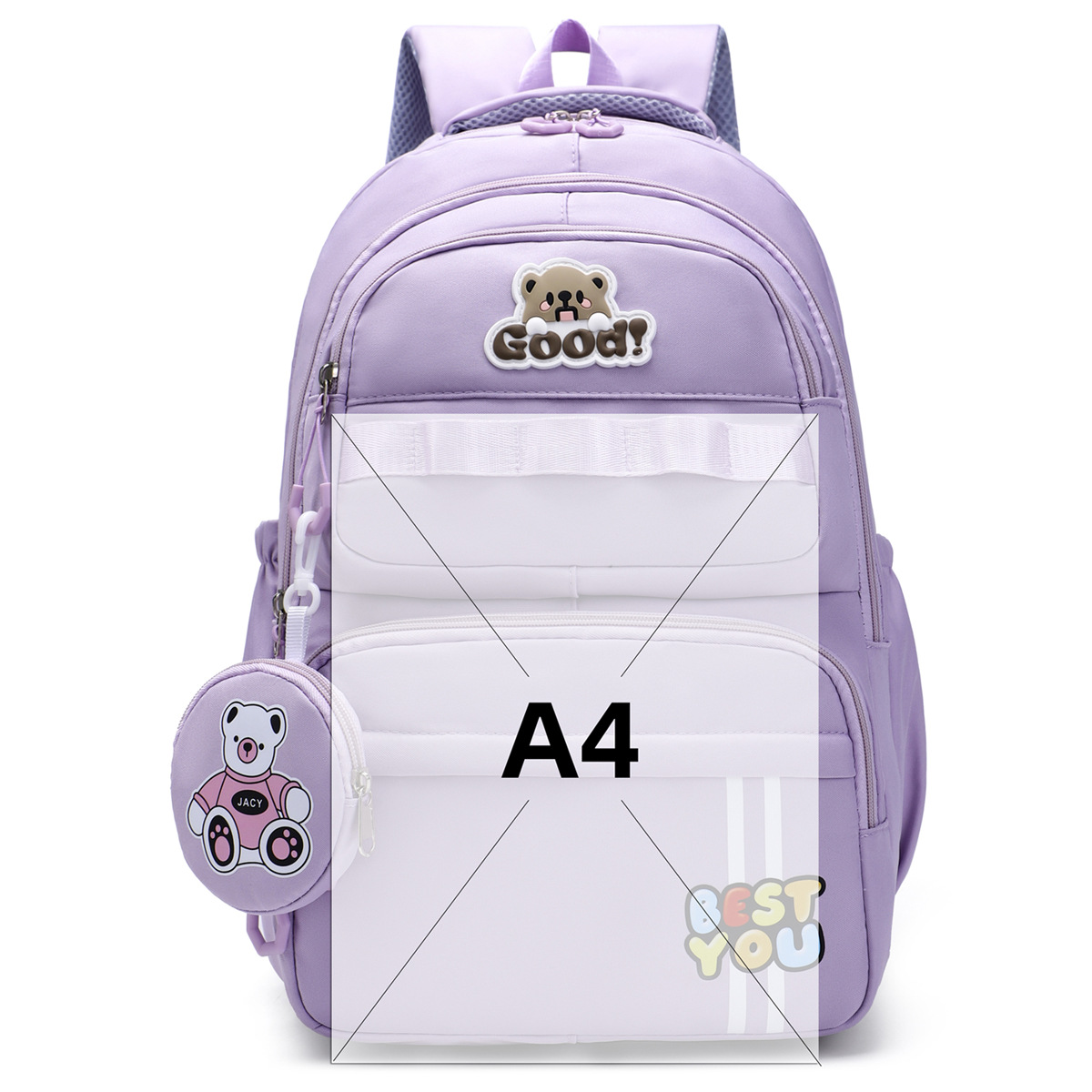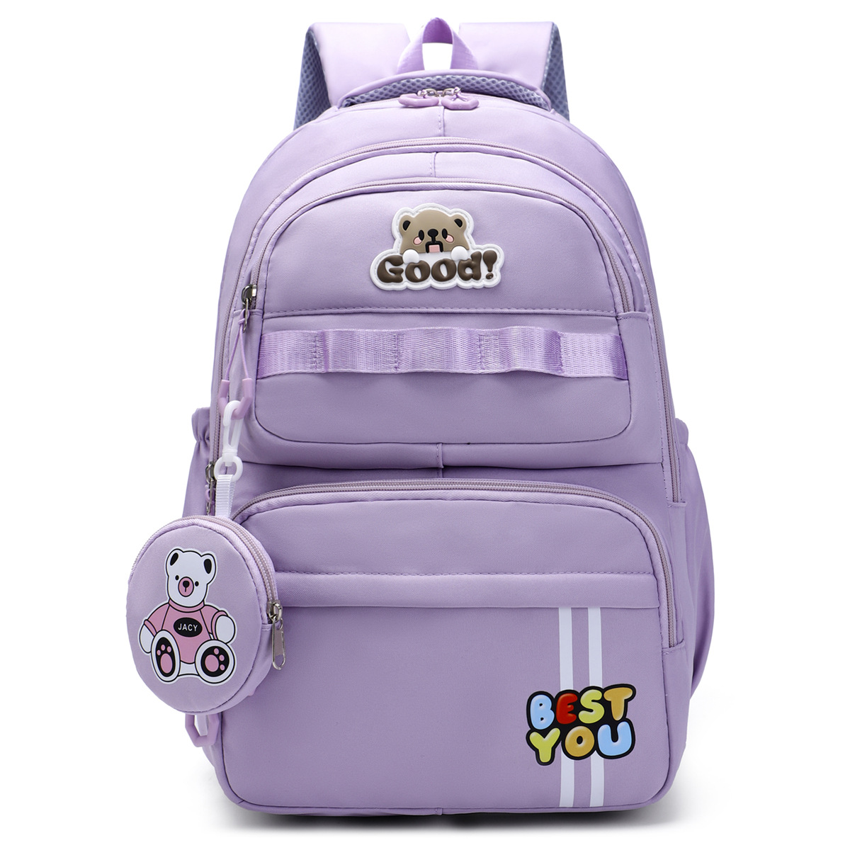 材质: 牛津布 里料质地: 涤纶 功能: 透气,减负 风格: 青春校园 开盖方式: 拉链 品牌: 其他 流行元素: 字母 颜色: 黑色,粉红色,紫罗兰,天蓝色,深蓝色 货号: 245-27 上市年份季节: 2025夏季 包内部结构: 电脑插袋 硬度: 中偏软 外袋种类: 内贴袋 有可授权的自有品牌: 否 有无夹层: 无 适用场景: 日常搭配 重量: 0.5 kg/个
