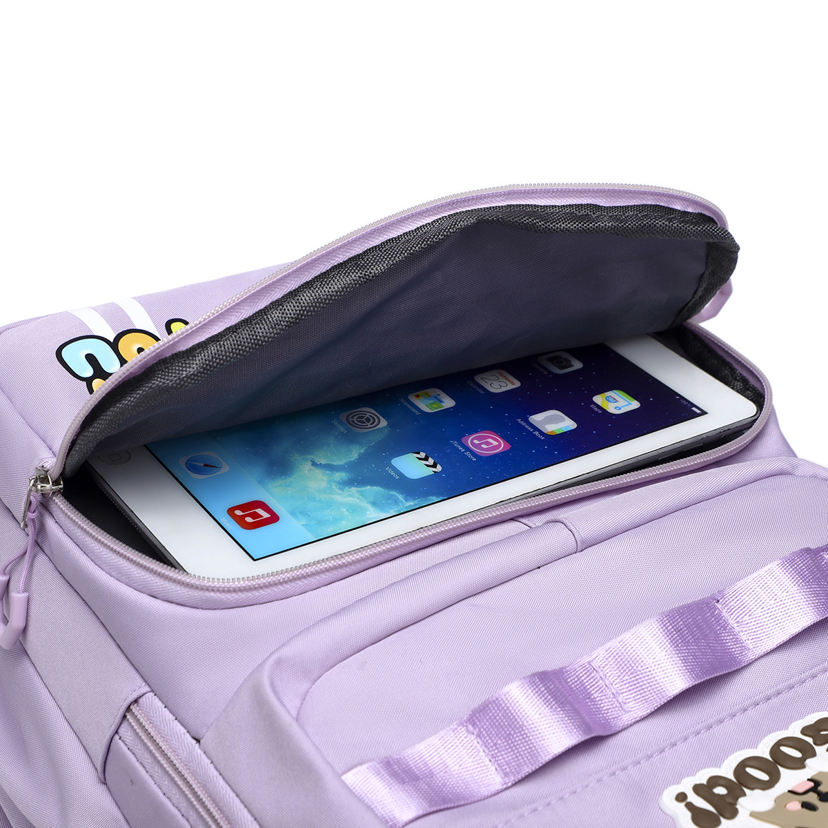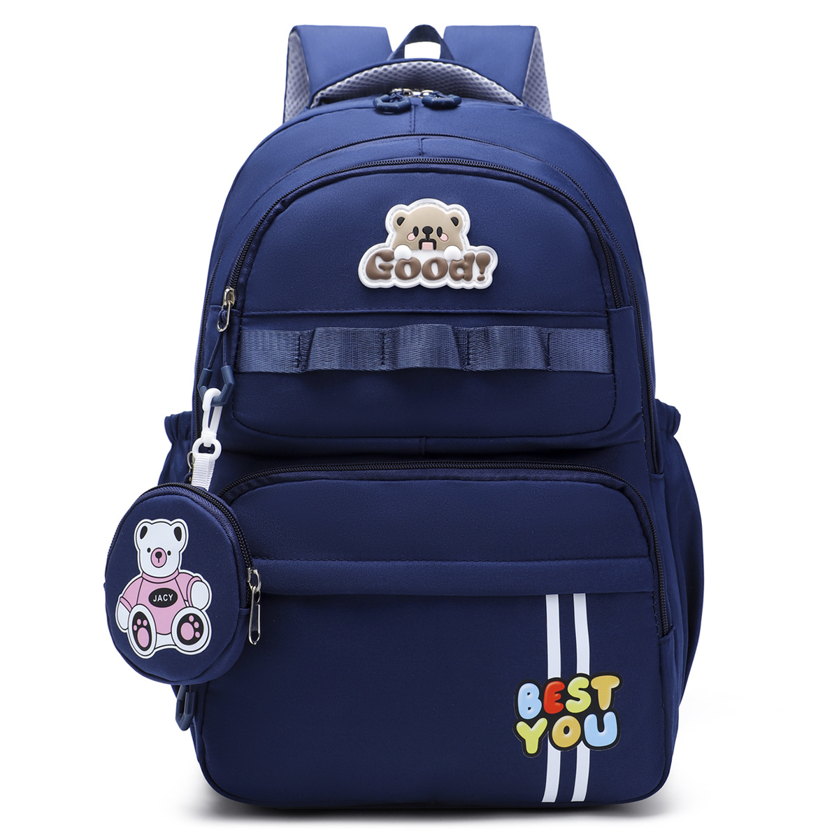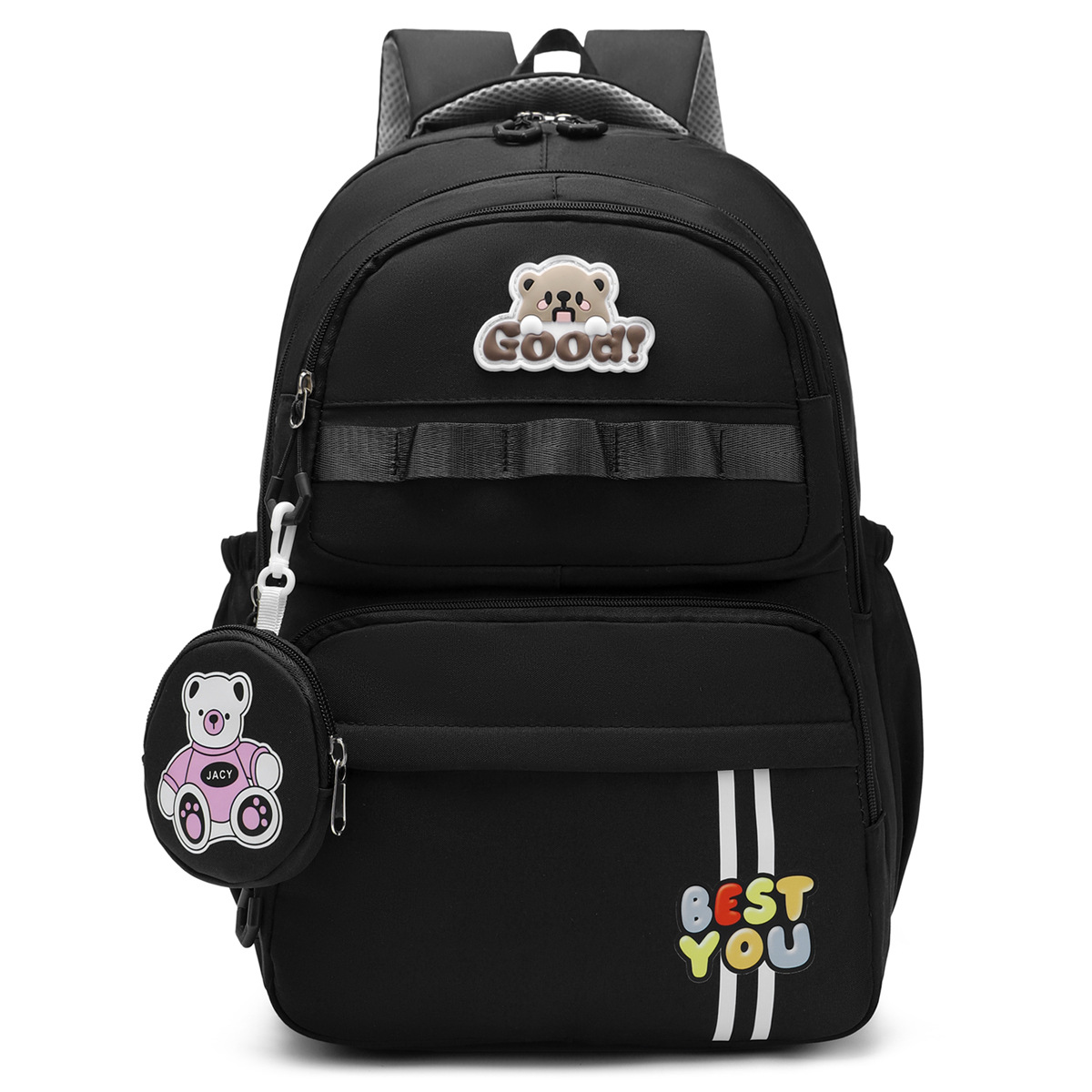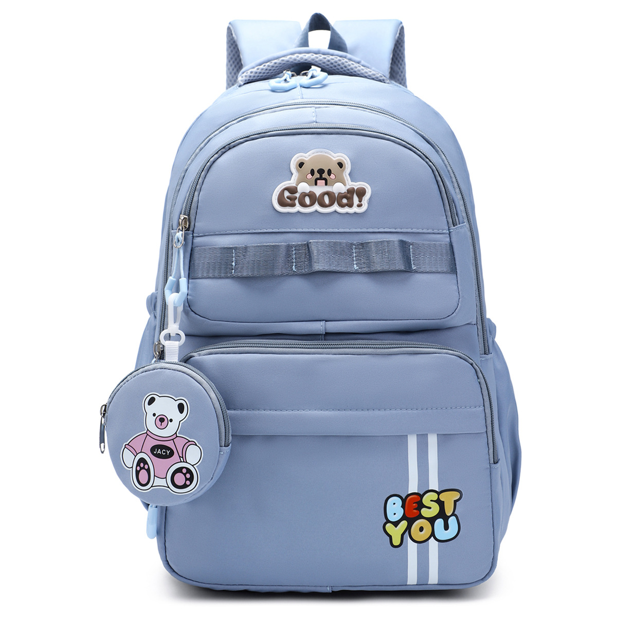 材质: 牛津布 里料质地: 涤纶 功能: 透气,减负 风格: 青春校园 开盖方式: 拉链 品牌: 其他 流行元素: 字母 颜色: 黑色,粉红色,紫罗兰,天蓝色,深蓝色 货号: 245-27 上市年份季节: 2025夏季 包内部结构: 电脑插袋 硬度: 中偏软 外袋种类: 内贴袋 有可授权的自有品牌: 否 有无夹层: 无 适用场景: 日常搭配 重量: 0.5 kg/个