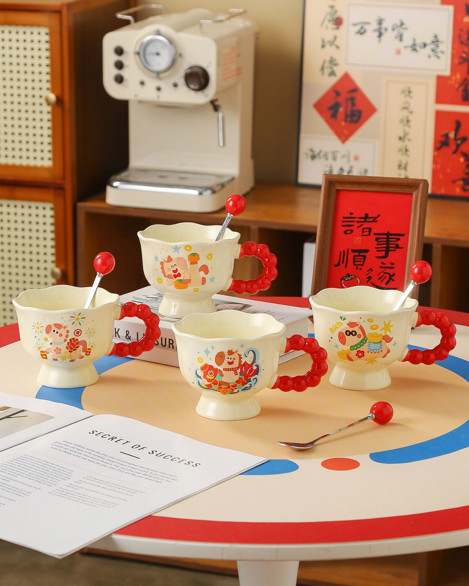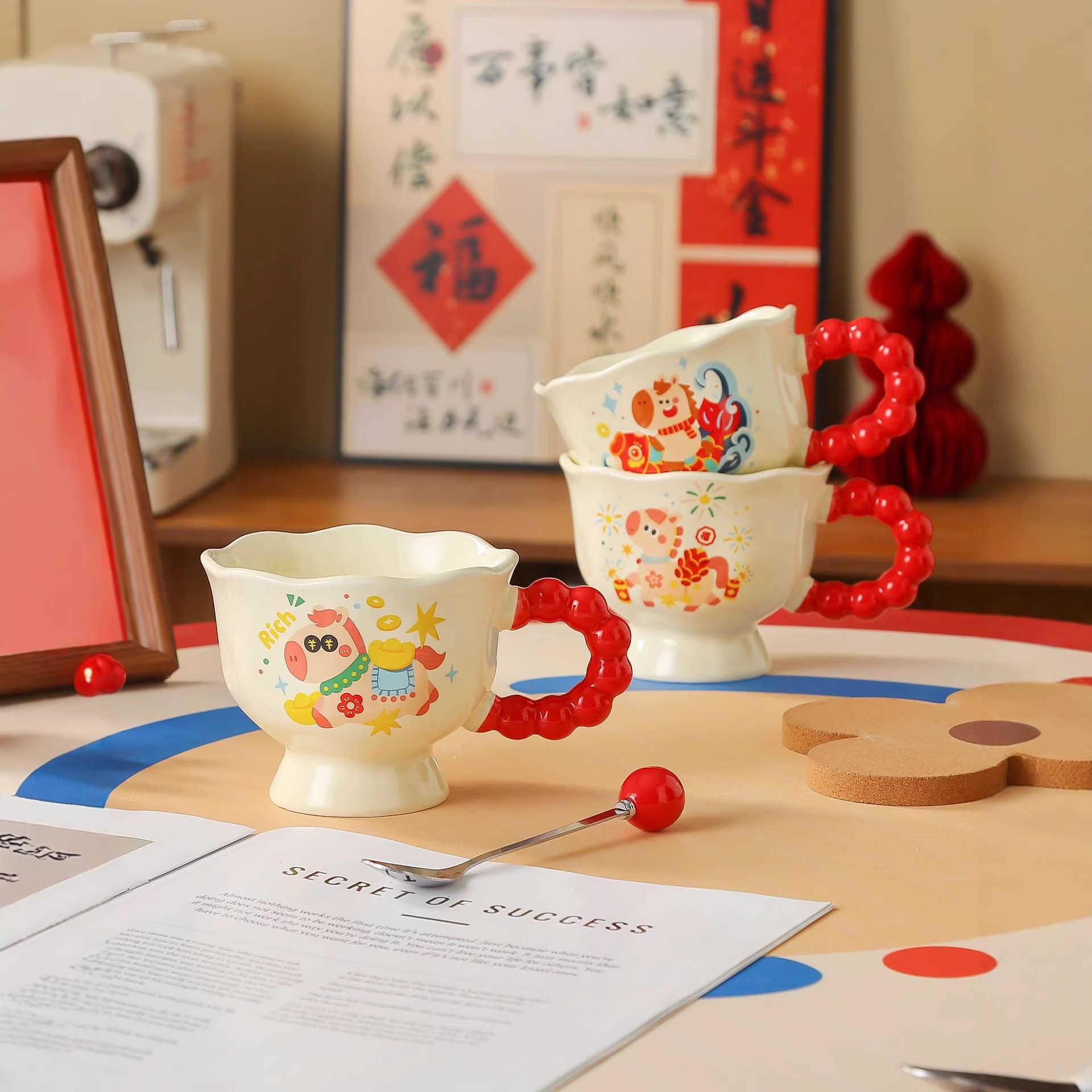 陶瓷杯春节喜庆可爱马克杯马年伴手礼实用水杯新年礼品套装 English | 投诉