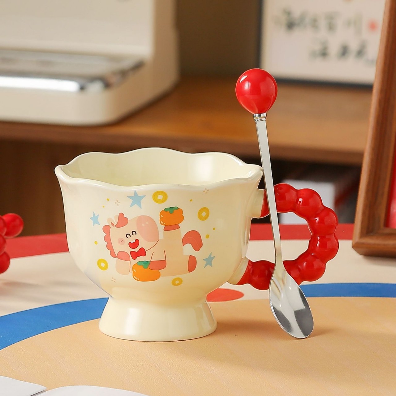 陶瓷杯春节喜庆可爱马克杯马年伴手礼实用水杯新年礼品套装