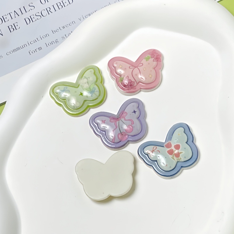 材质: 塑料/树脂 种类: diy饰品配件 处理工艺: 印刷 品牌: 无 尺寸: 中 流行元素: 蝴蝶 货号: H2508019 产地: 义乌 颜色: 绿色,紫色,黄色,粉色,蓝色 主要下游平台: 淘宝,京东,ebay,亚马逊,wish,