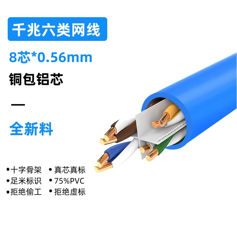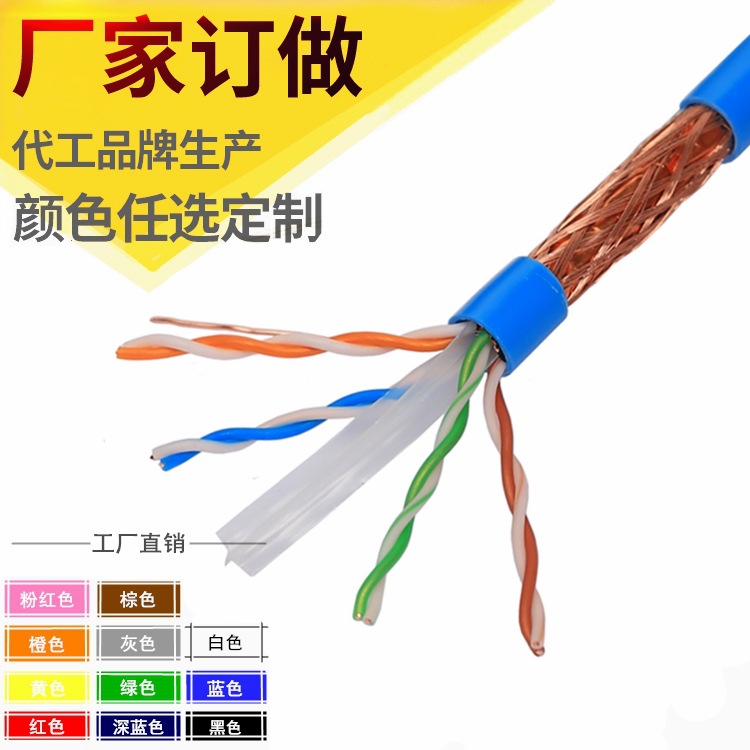 【型号含义】八芯六类双屏蔽网线+十字架+铝箔+透明膜+地线+编织网(96铜包铝网)