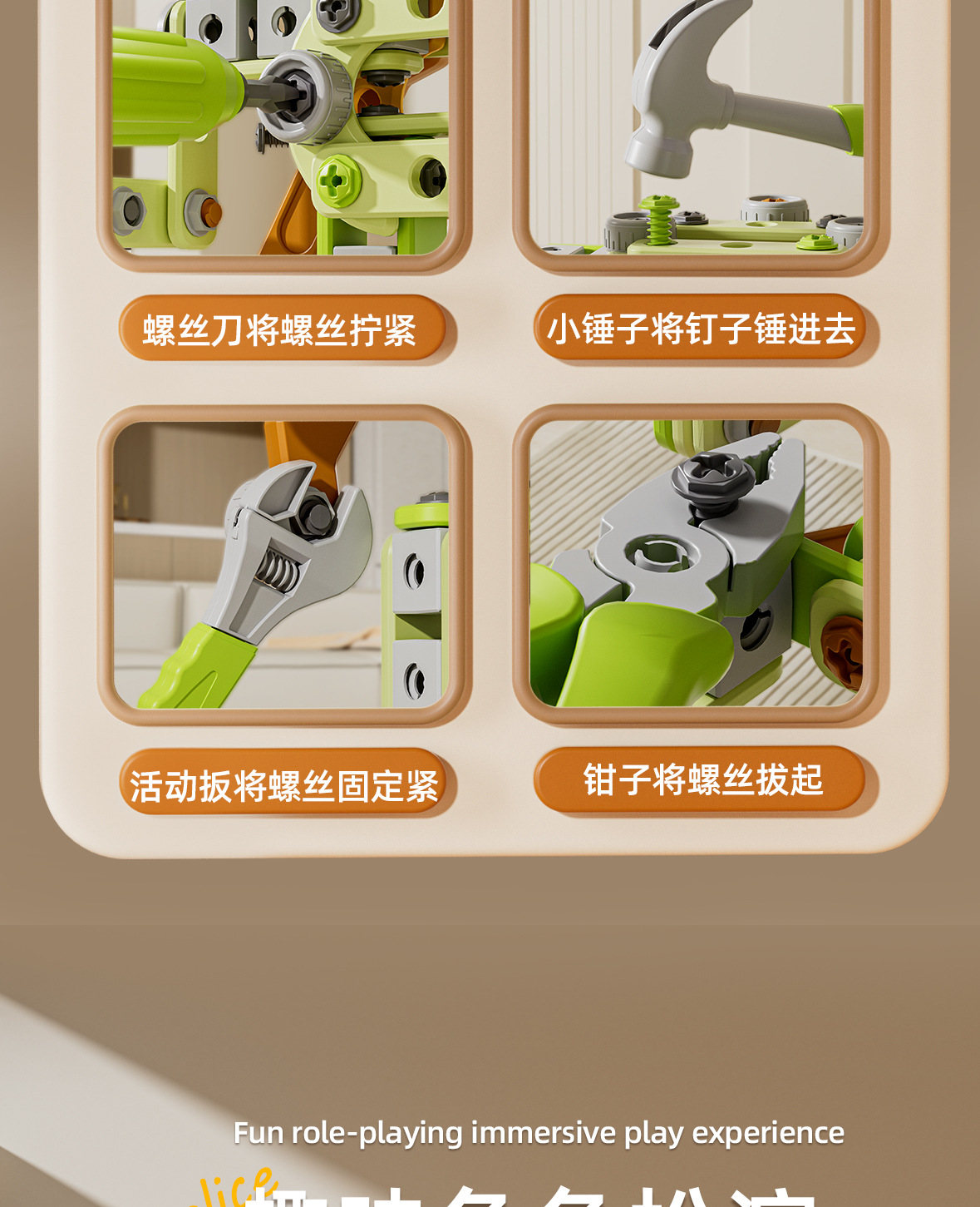 宝宝拧打螺丝儿童玩具组装拼装工具3岁电钻益智男孩六一儿童礼物 English | 投诉