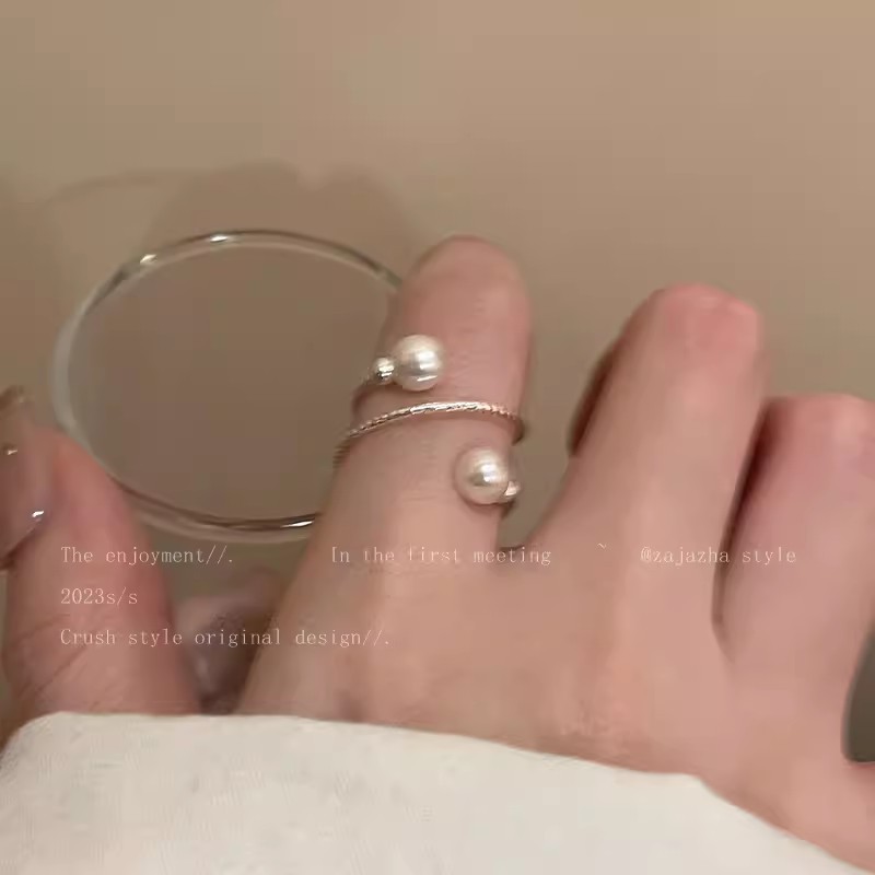 多层缠绕珍珠开口可调节戒指女法式轻奢小众设计高级感食指戒指环