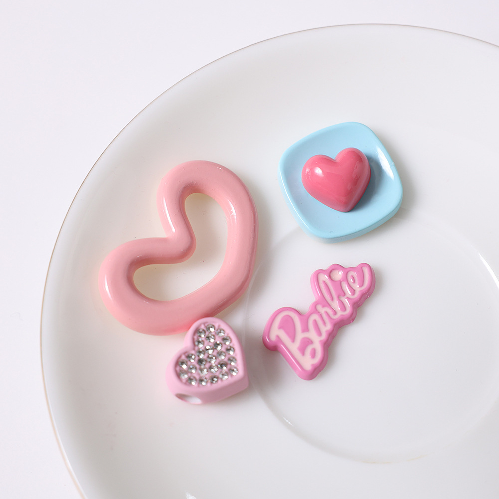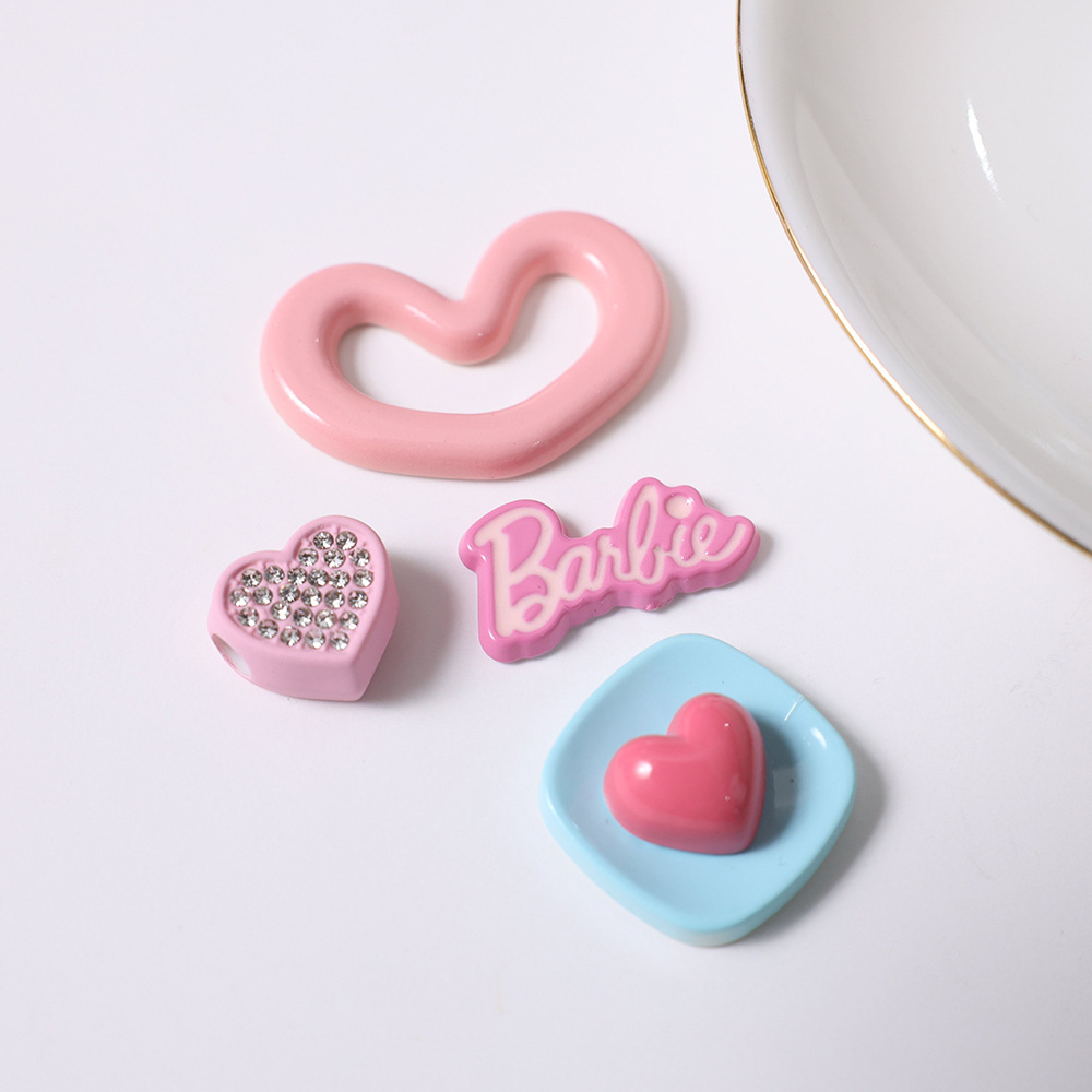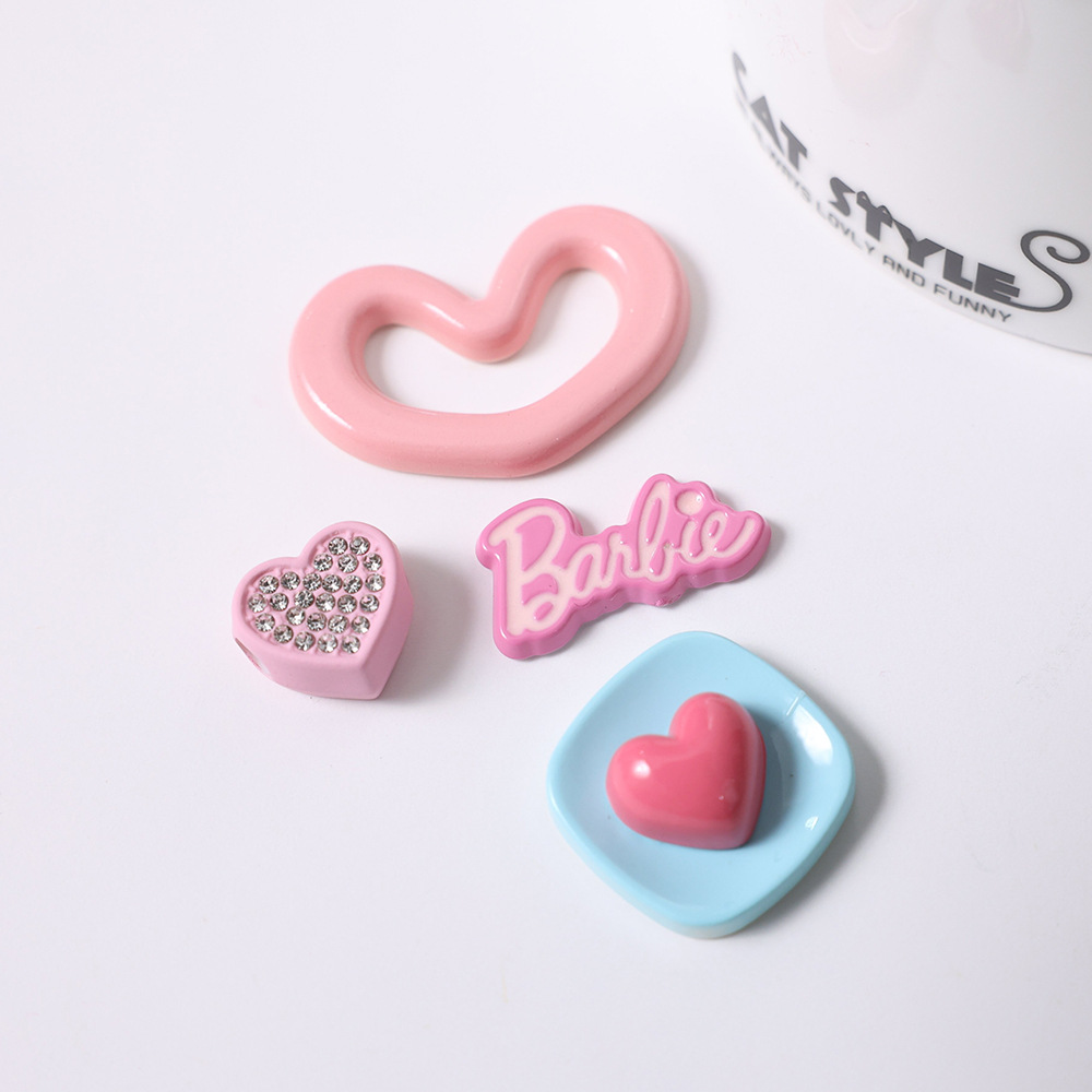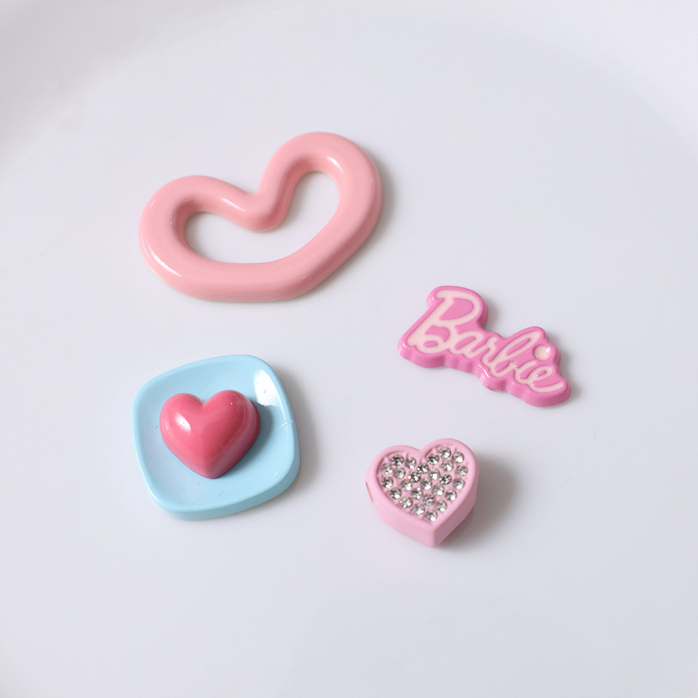 卡通粉色爱心亚克力 diy鞋扣手机壳服饰箱包发夹树脂饰品配件批发