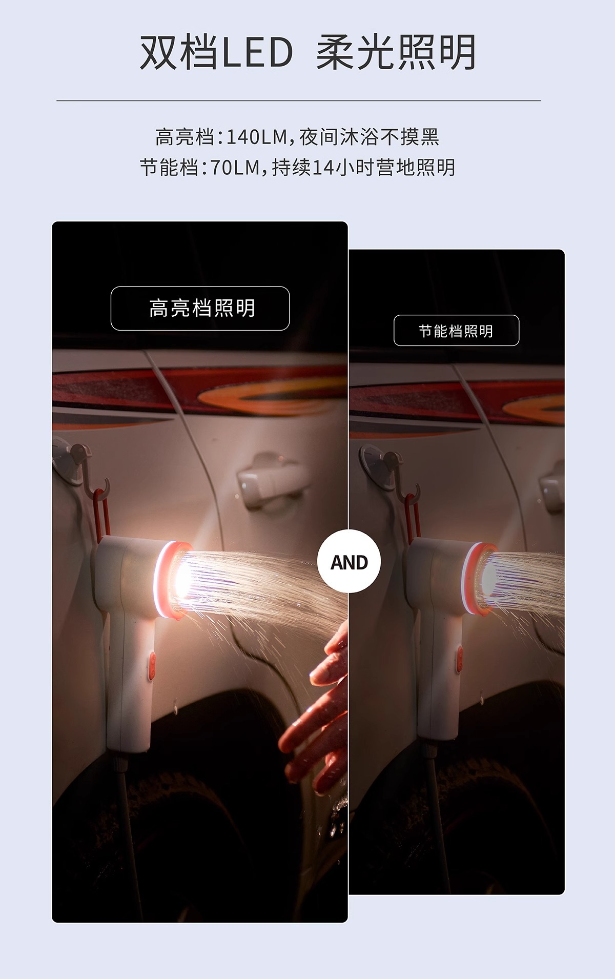 照明亮度:2档:70lm/140lm