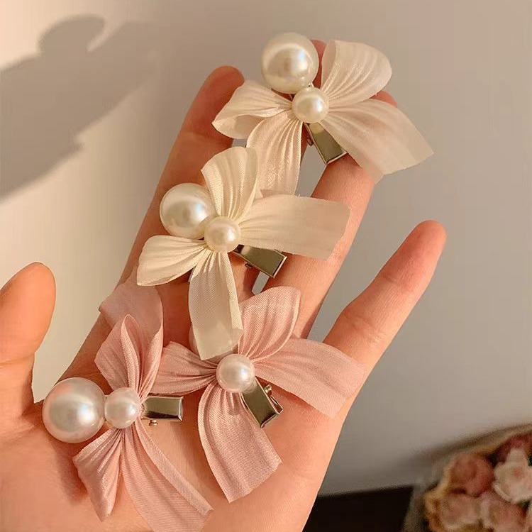 甜美蝴蝶结珍珠发夹刘海夹侧边小夹子鸭嘴夹暑假节日公主发卡发饰