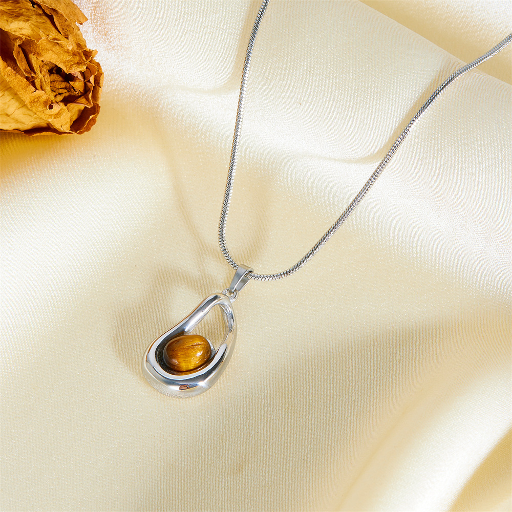 美拉德风时尚个性简约不规则虎眼石镂空项链女小众钛钢不掉色项饰