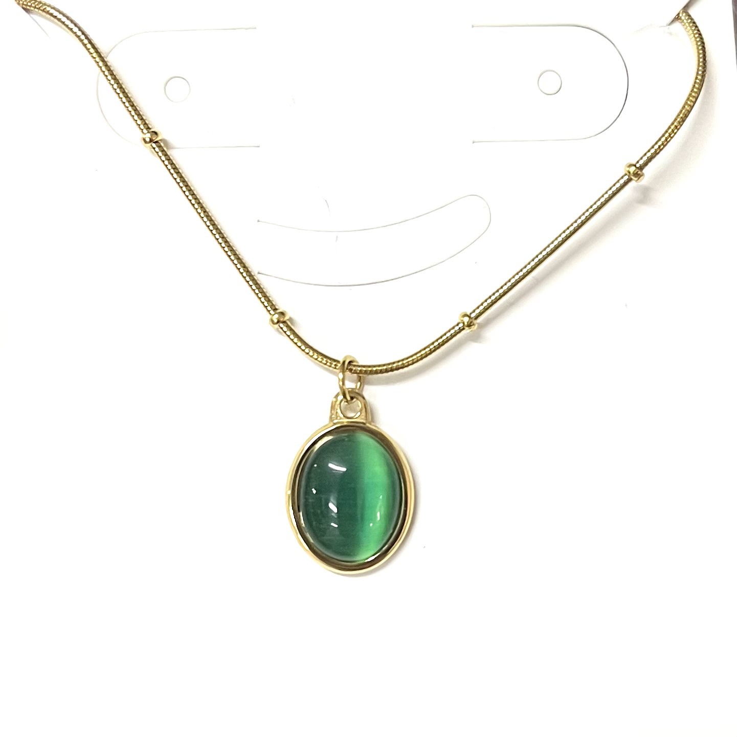 欧美轻奢风时尚简约优雅椭圆形猫眼石项链女高级感钛钢不掉色项饰 投诉
