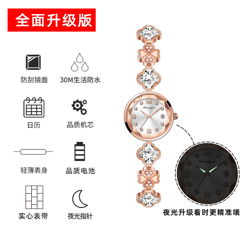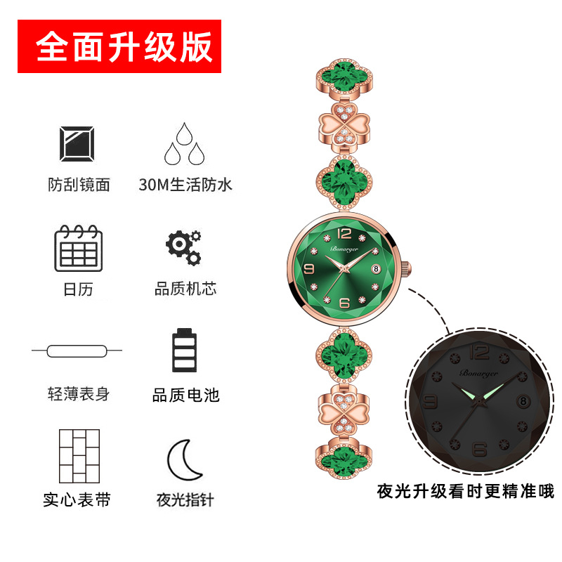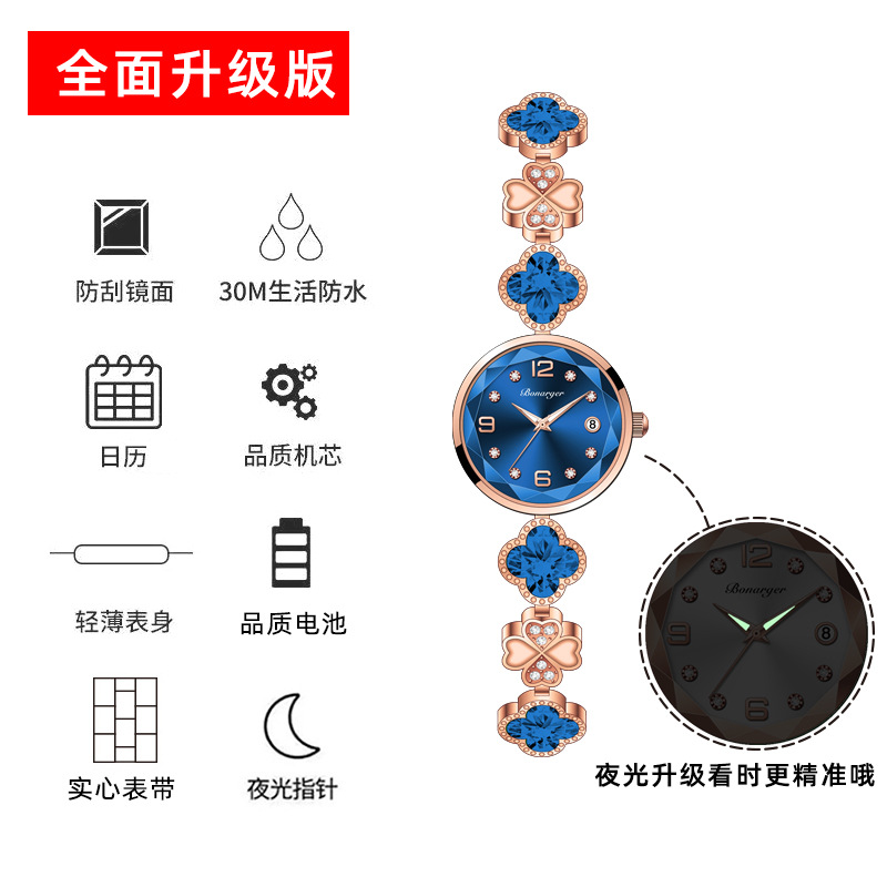 跨境爆款四叶草防水女士手表手链女款时尚新款小众轻奢石英女表 投诉