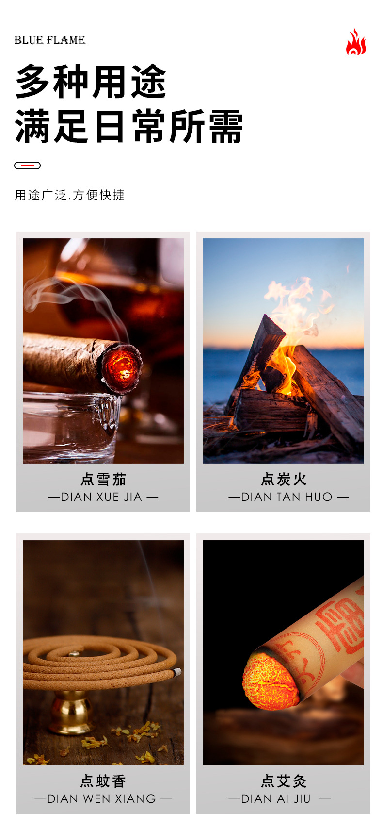 购买须知:此款燃料是丁烷气体,打火方式是充电电子打火,开盖触摸可点火(注:每次开盖只可触摸一次点火)