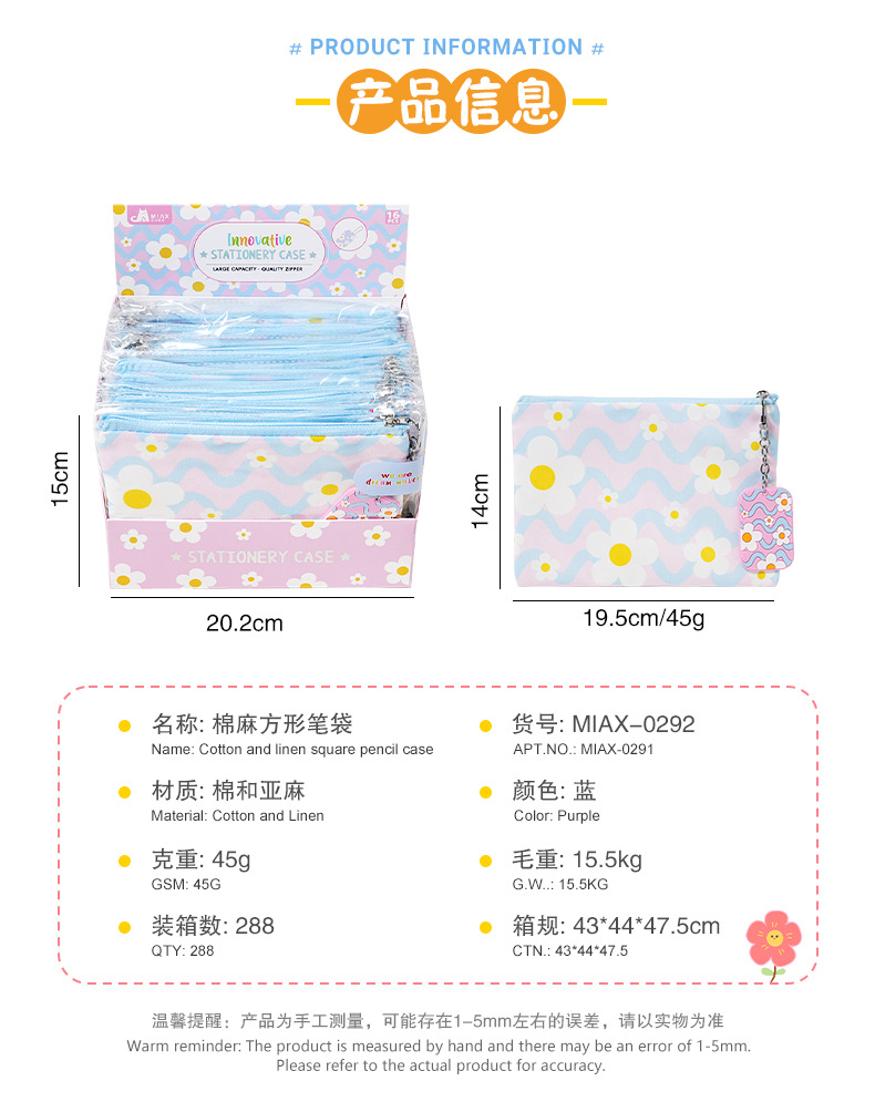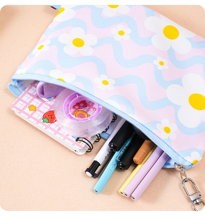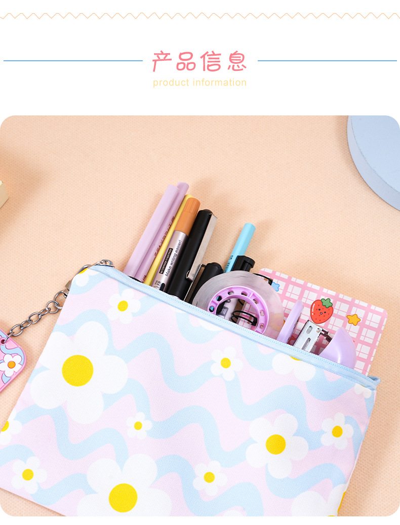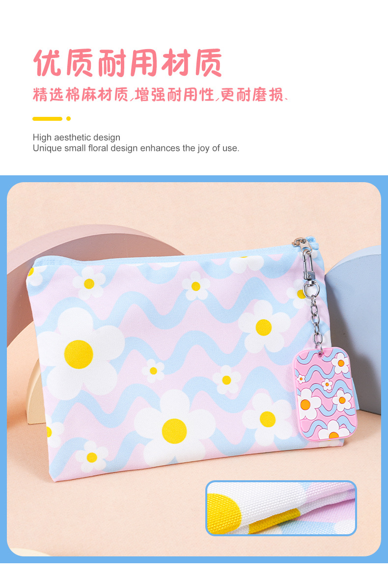 小白花方形笔袋少女心 ins风高颜值学生文具收纳袋可爱挂件批发