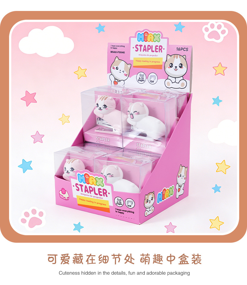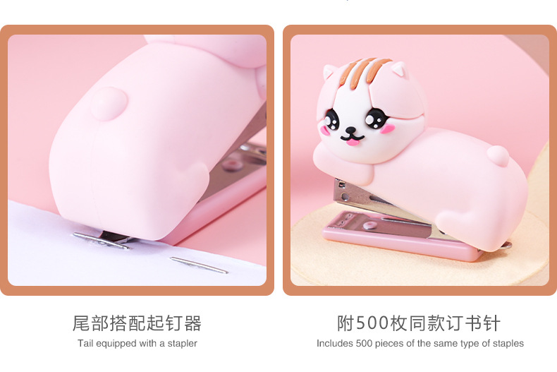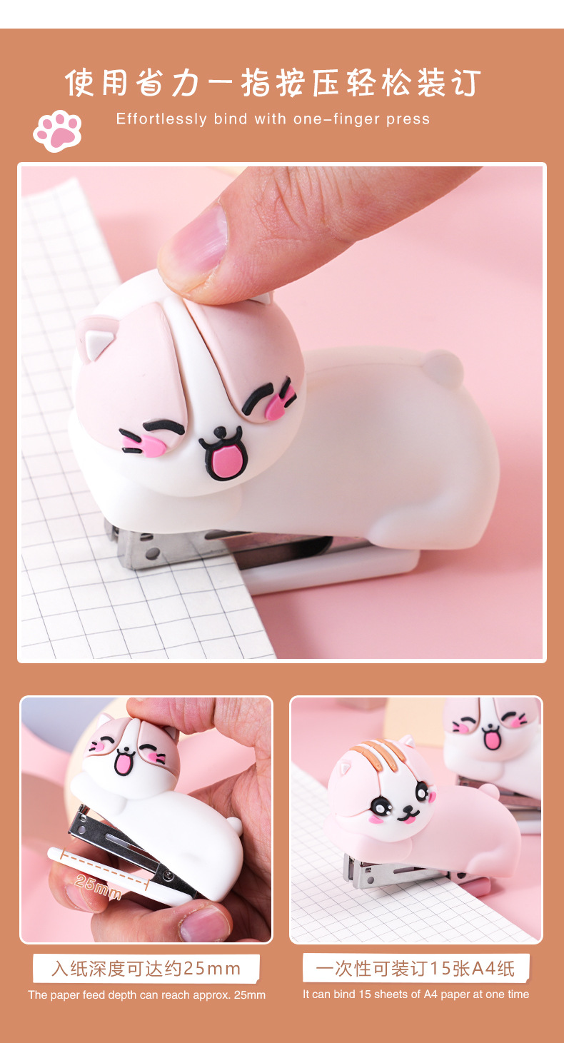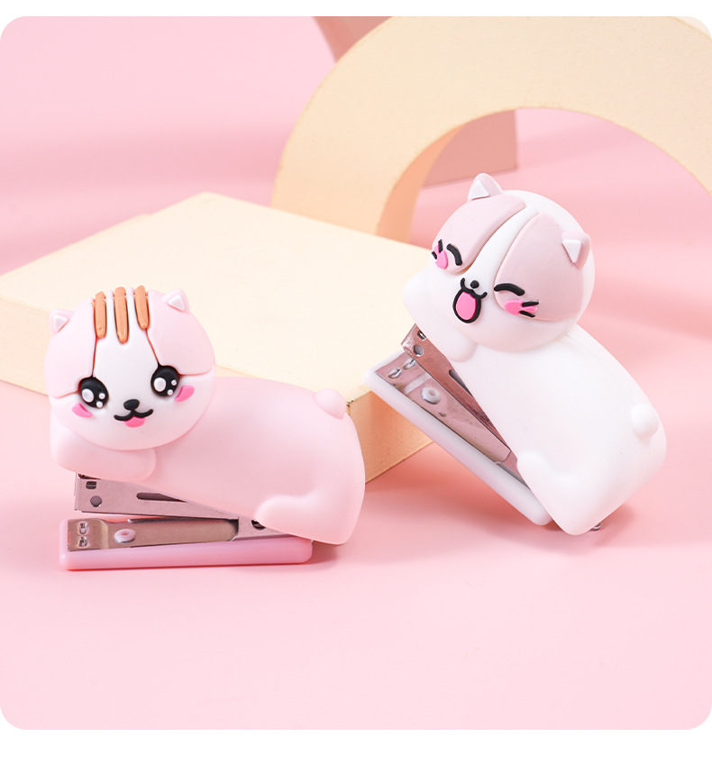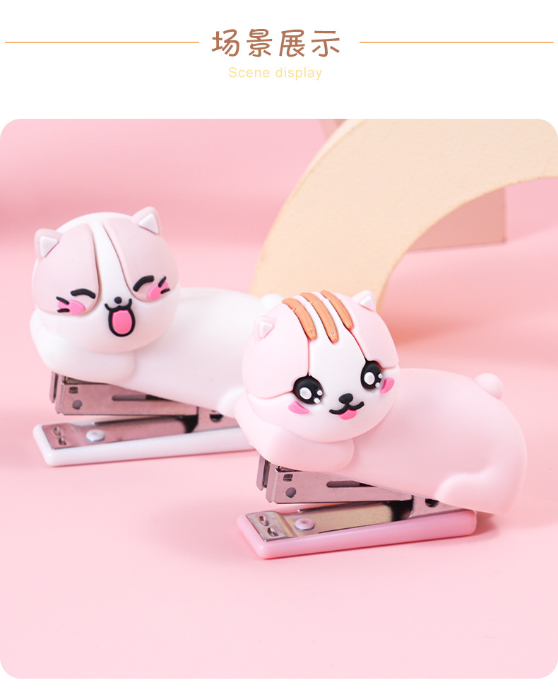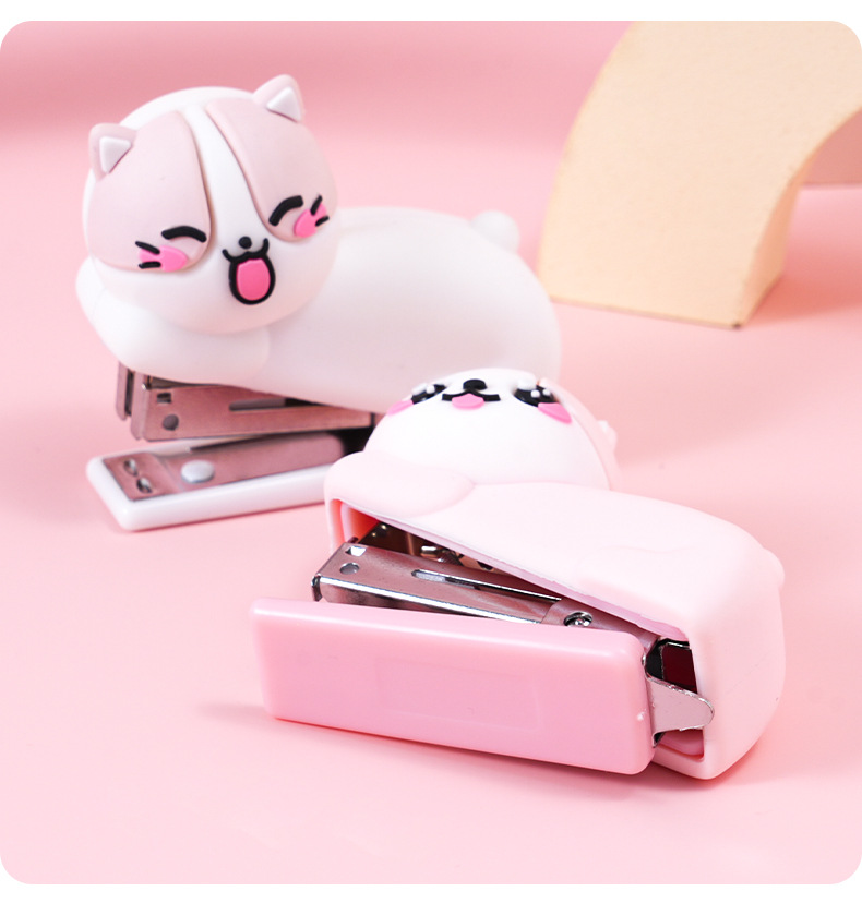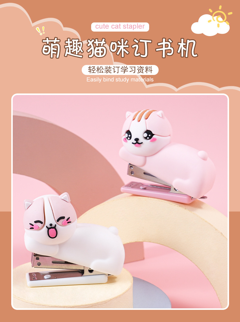 迷你卡通猫咪硅胶订书机学生办公便携式装订机儿童小型钉书机礼品