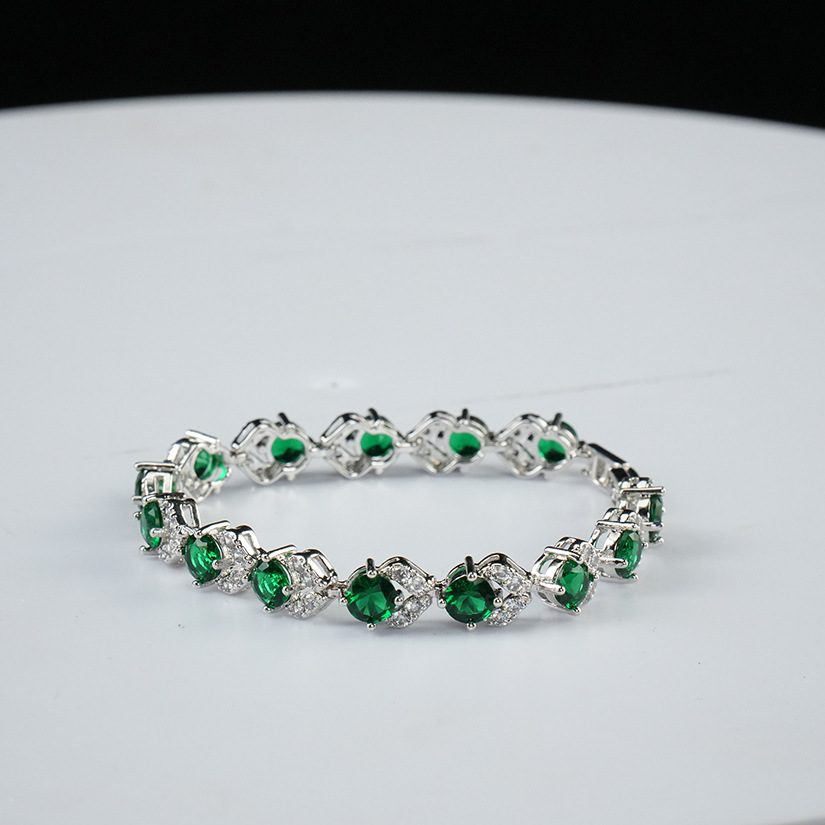 跨境欧美镀金锆石手链百搭小众高级感水晶手串饰品祖母绿手饰批发 投诉