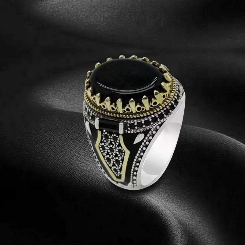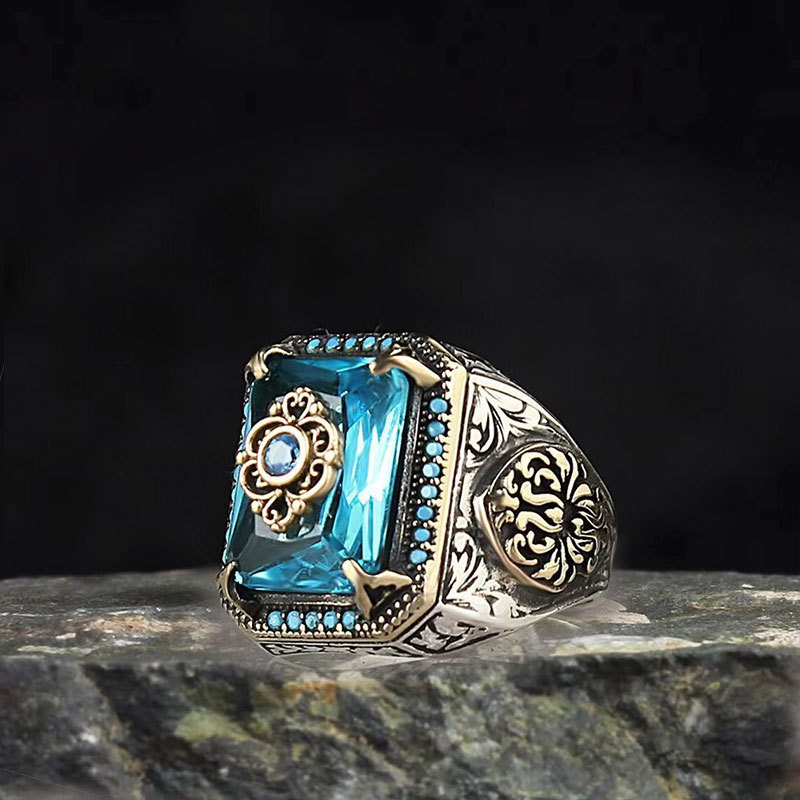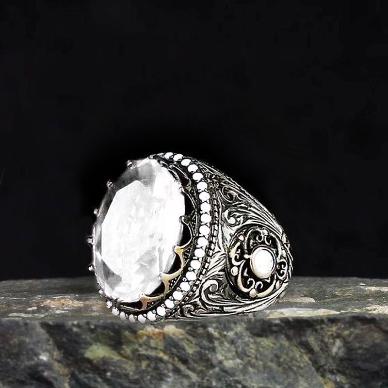 跨境图腾花纹锆石戒指男朋克暗黑潮酷欧美风指环流行复古饰品批发货源