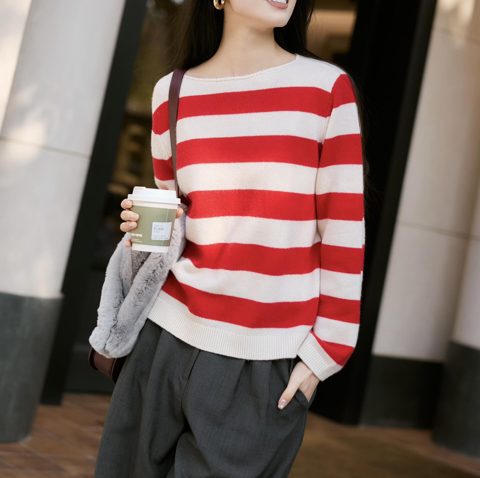 26早春新款羊毛撞色条纹针织衫新年绝美超好看的打底衫女毛衣上衣 English | 投诉