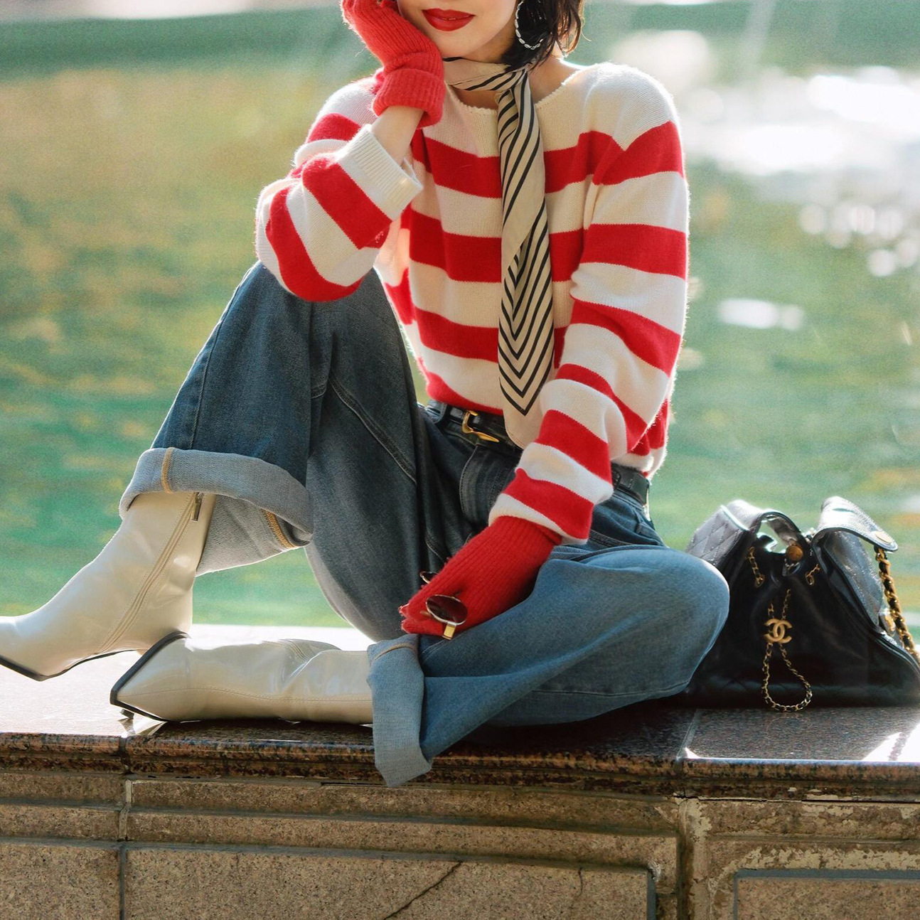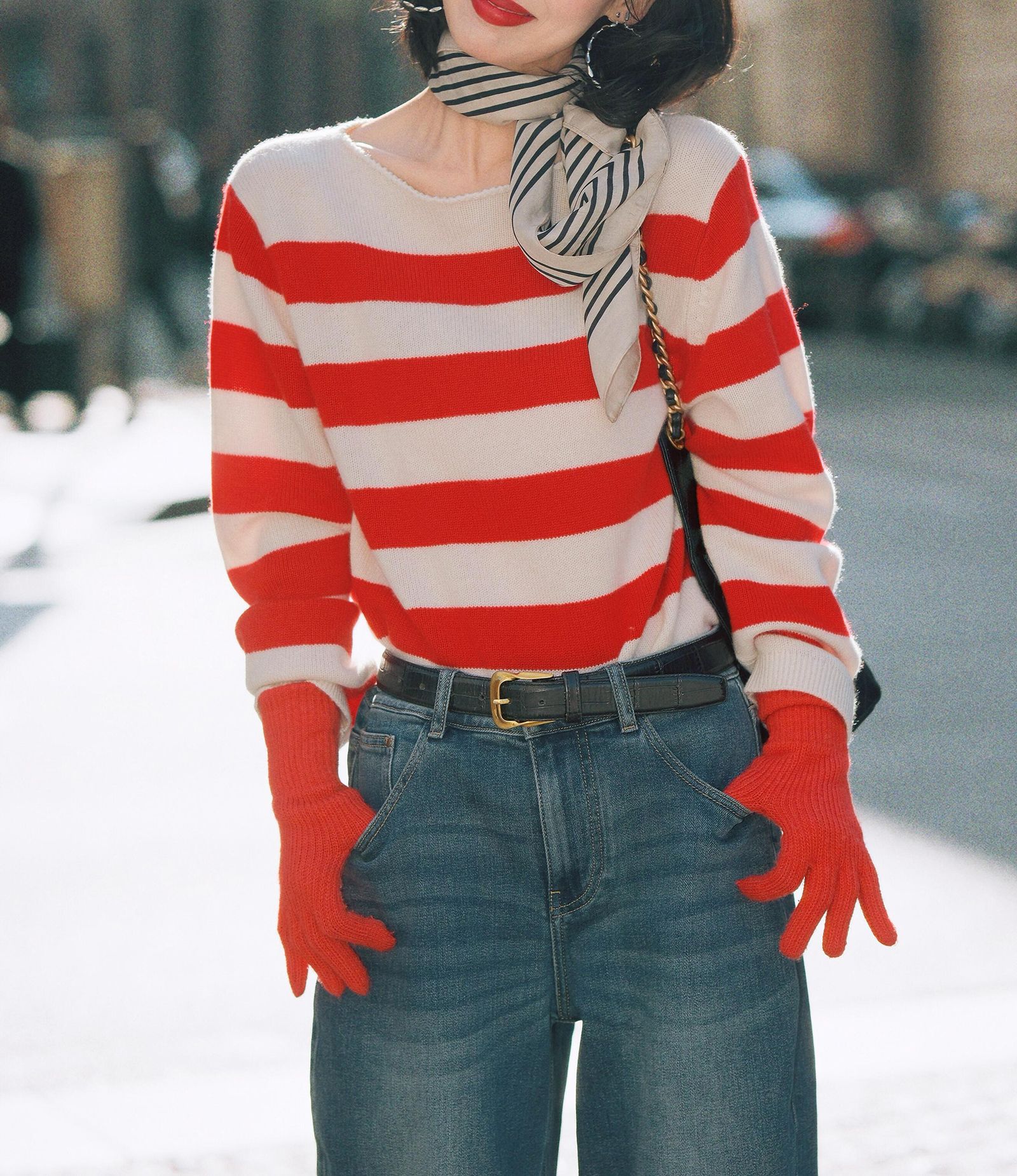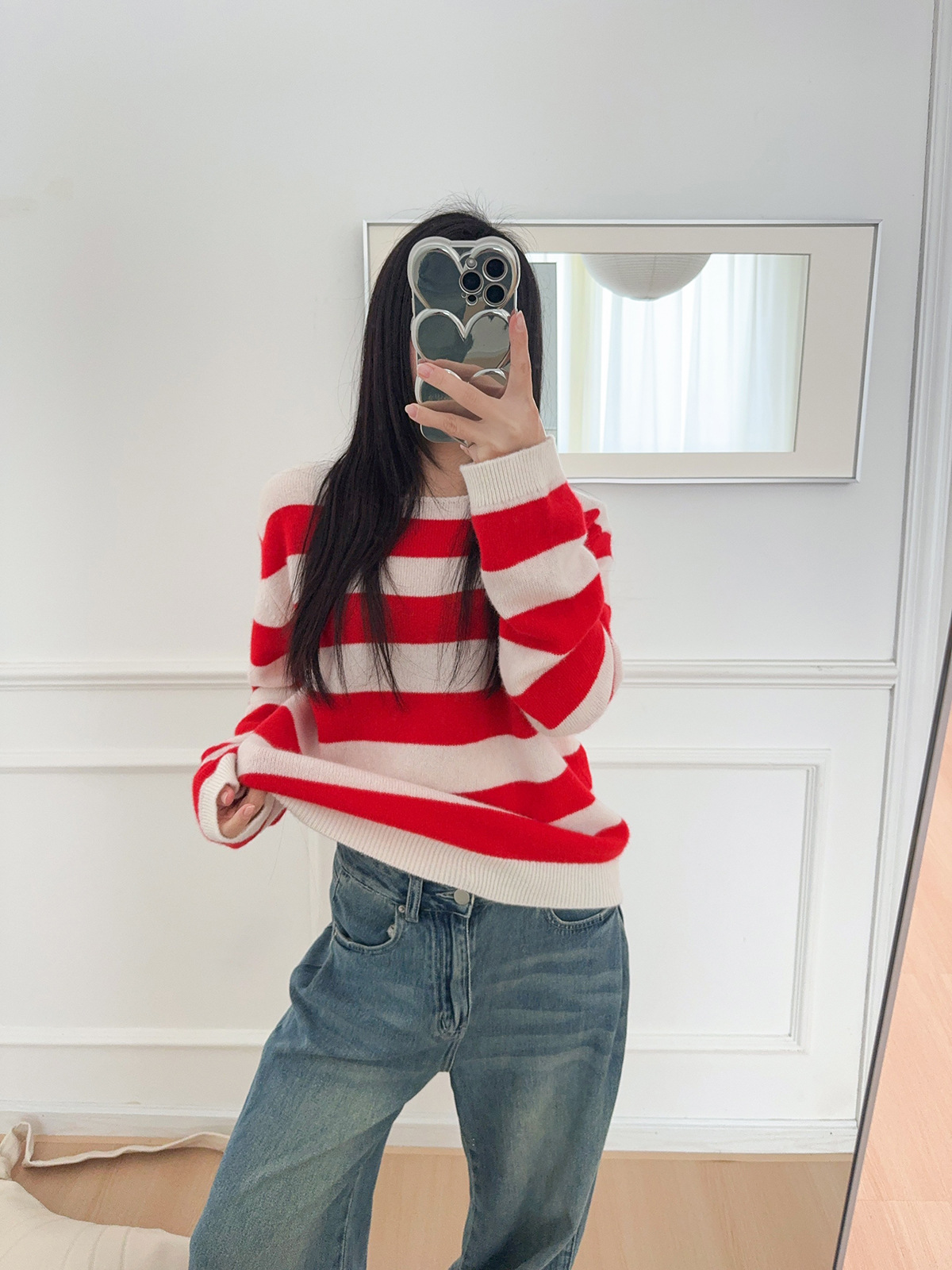 26早春新款羊毛撞色条纹针织衫新年绝美超好看的打底衫女毛衣上衣