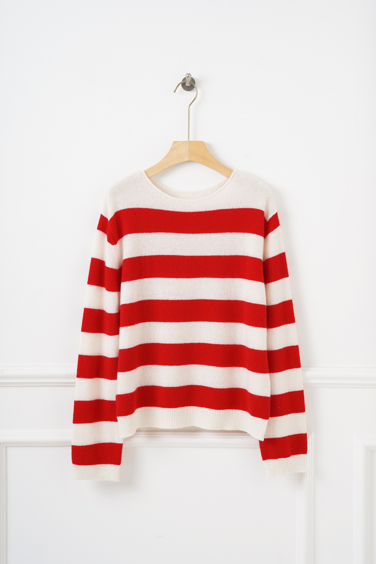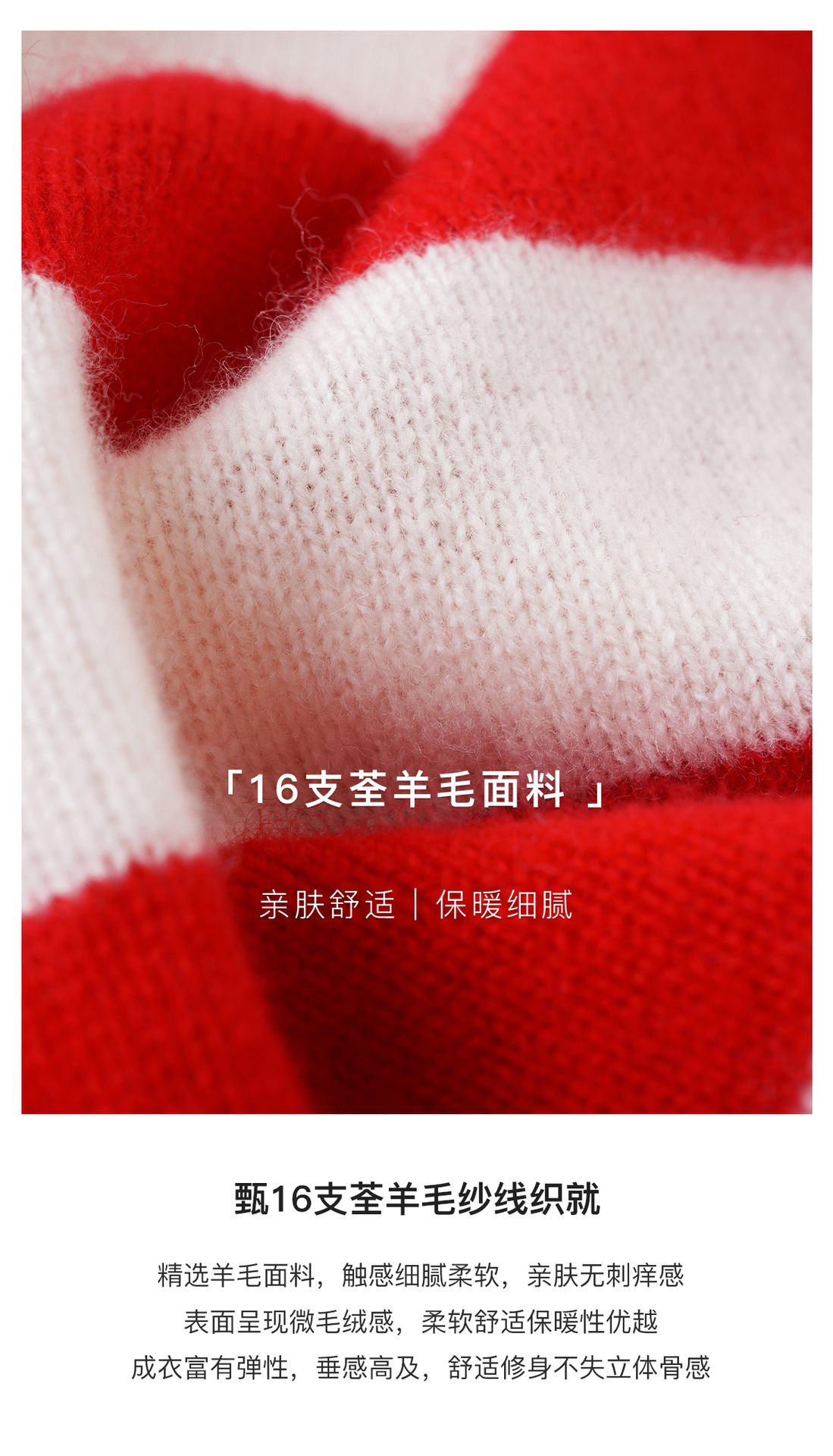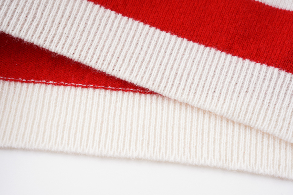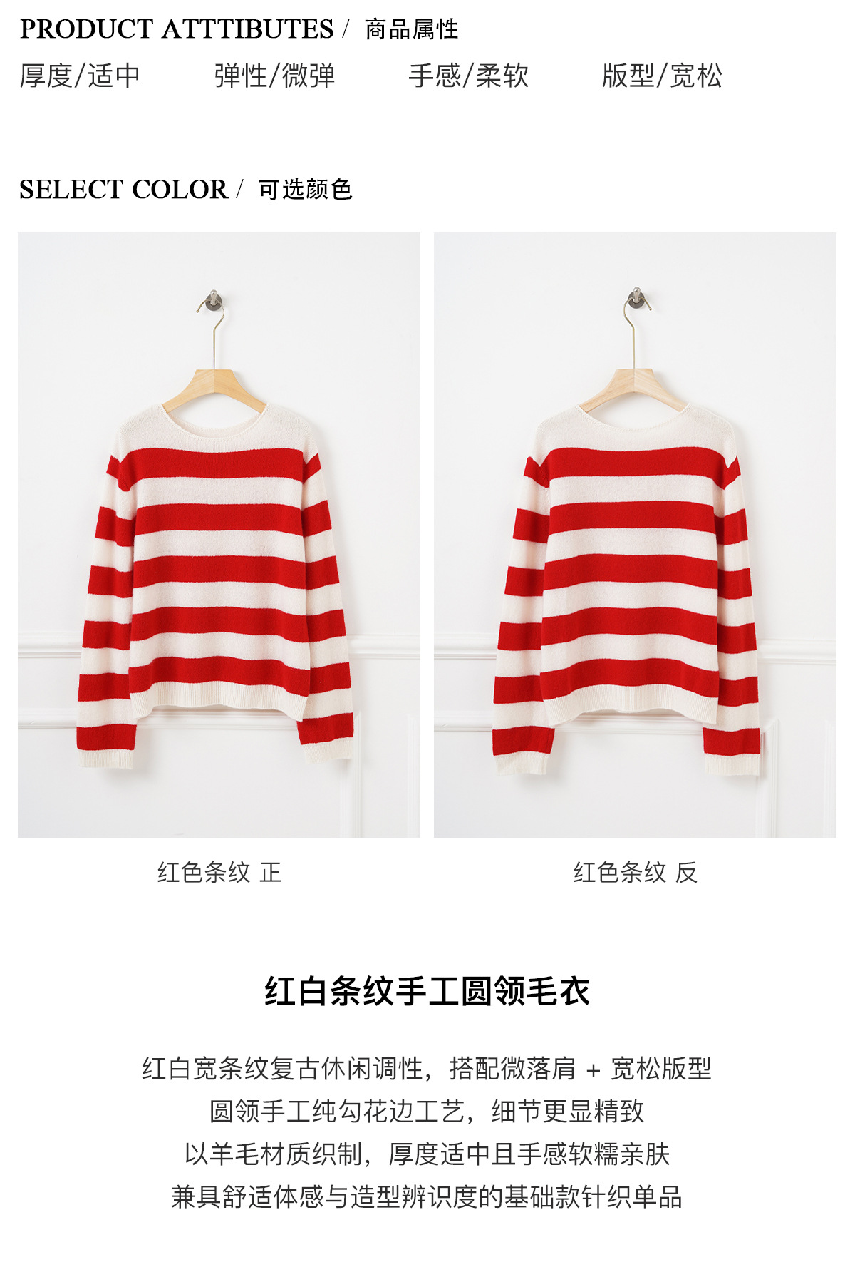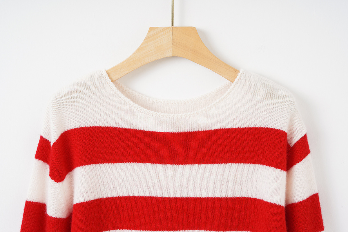 面料名称: 绵羊毛 主面料成分: 羊毛 厚薄: 常规 款式: 套头款 工艺: 针织 风格: 通勤风 品牌: 其他 主面料成分2: 羊毛 货号: S佳红条纹毛衣 图案: 条纹/格子 组合形式: 单件 版型: 常规 袖型: 常规袖 上市年份/季节: 2026年春季 领型: 圆领 袖长: 长袖 流行元素: 条纹 衣长: 普通款(50cm<衣长≤65cm) 颜色: 条纹 尺码: S,M,L 重量: 0.5 kg/件