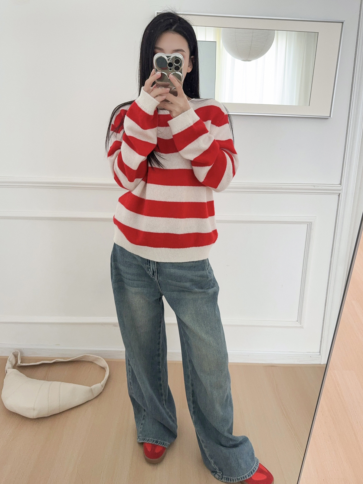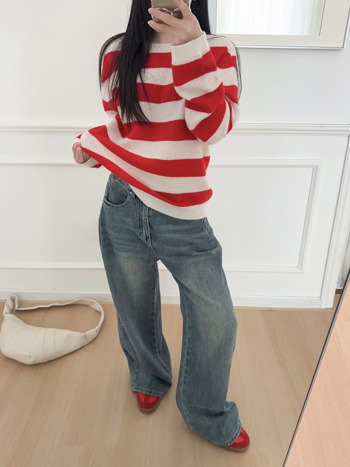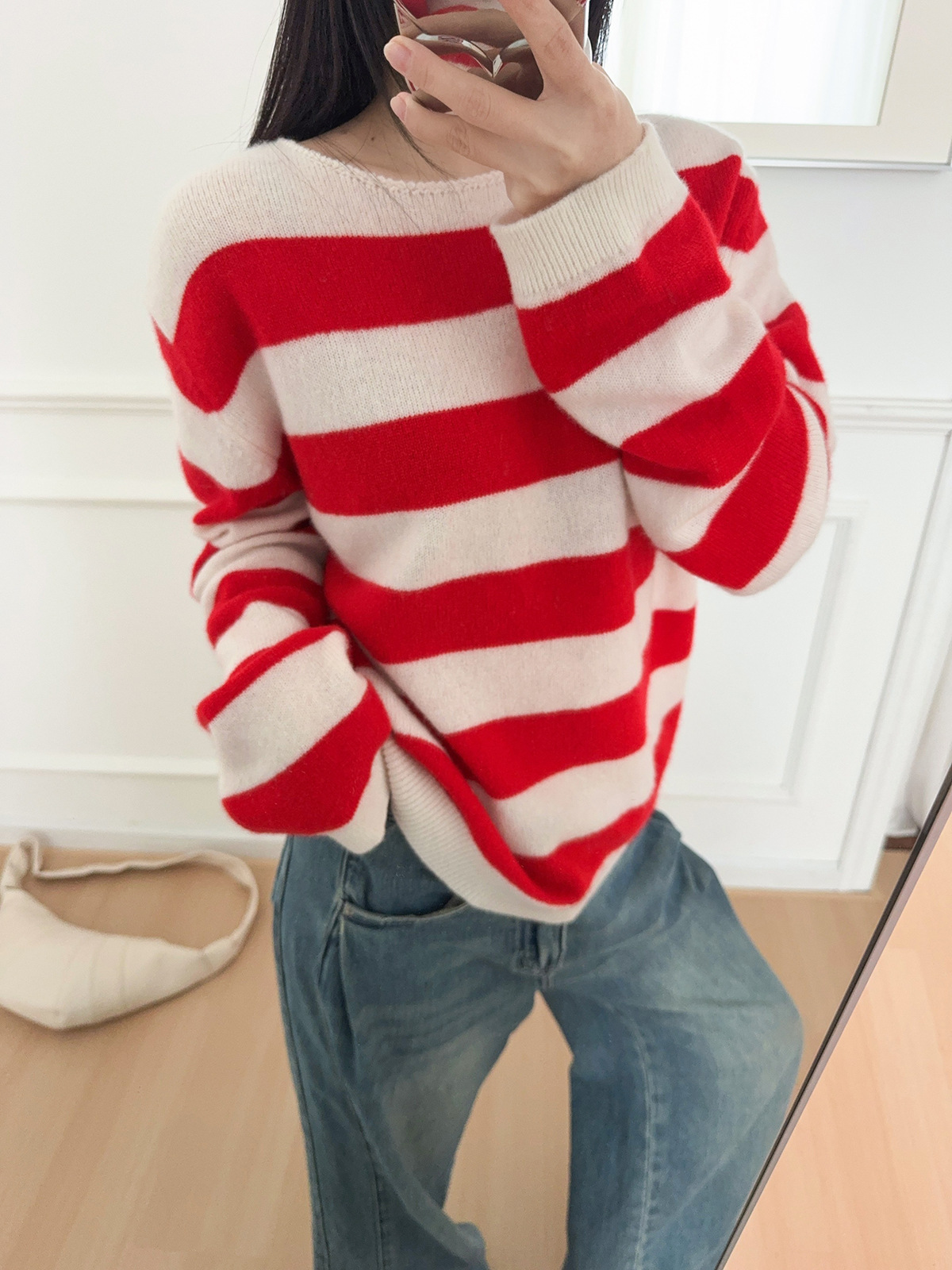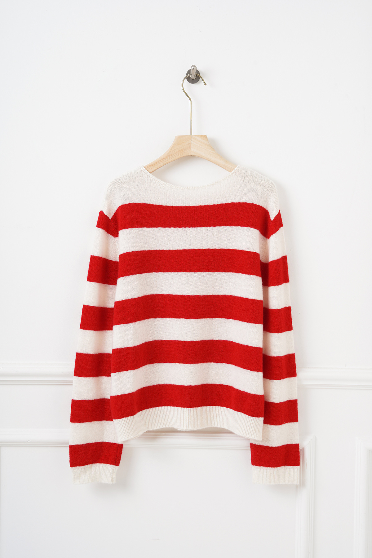 面料名称: 绵羊毛 主面料成分: 羊毛 厚薄: 常规 款式: 套头款 工艺: 针织 风格: 通勤风 品牌: 其他 主面料成分2: 羊毛 货号: S佳红条纹毛衣 图案: 条纹/格子 组合形式: 单件 版型: 常规 袖型: 常规袖 上市年份/季节: 2026年春季 领型: 圆领 袖长: 长袖 流行元素: 条纹 衣长: 普通款(50cm<衣长≤65cm) 颜色: 条纹 尺码: S,M,L 重量: 0.5 kg/件