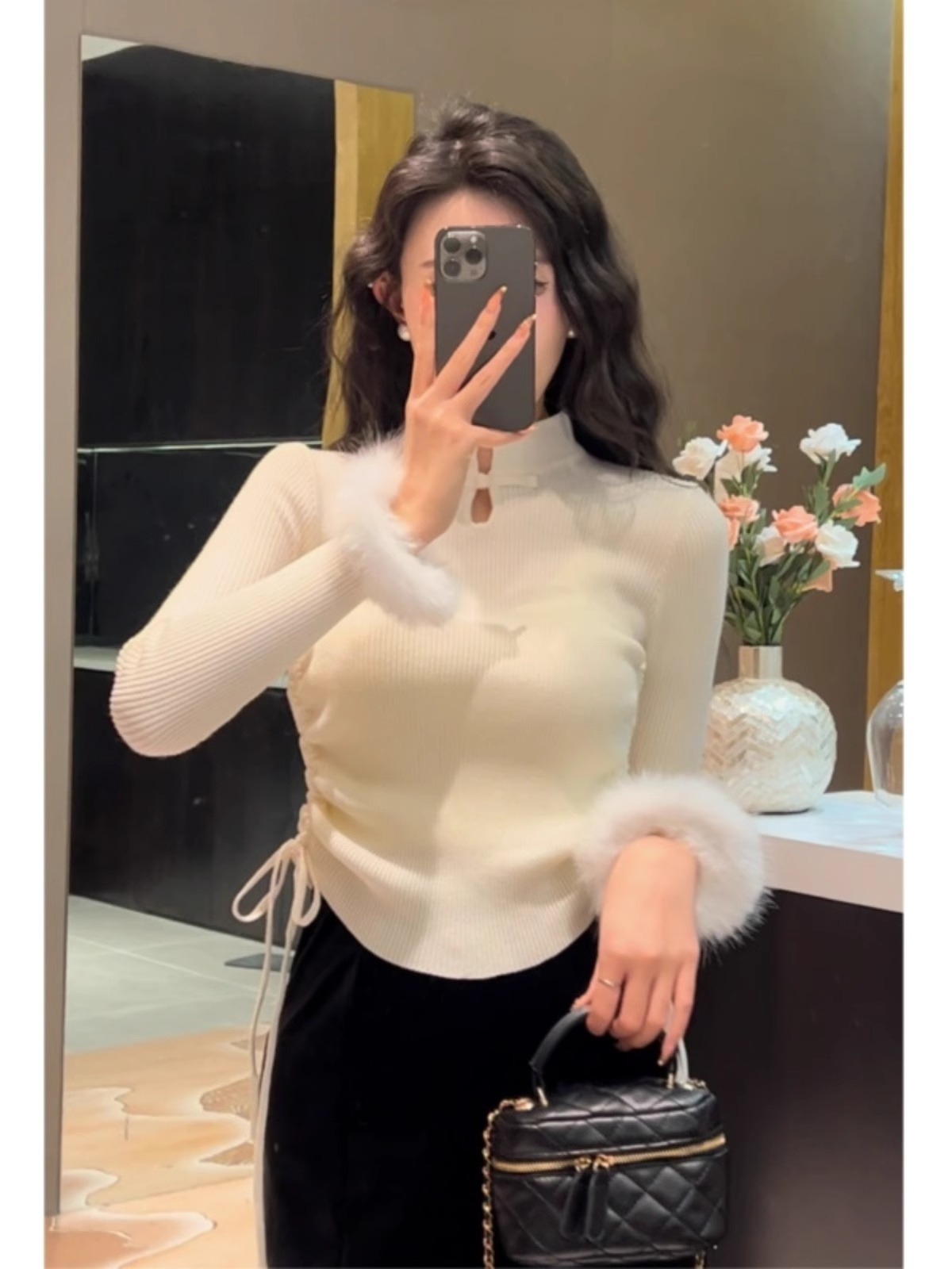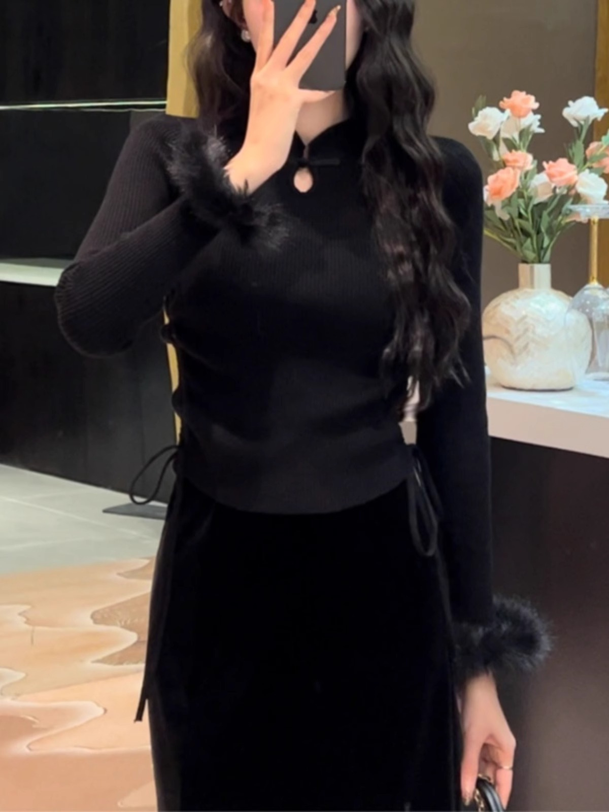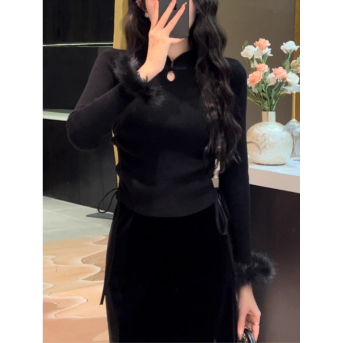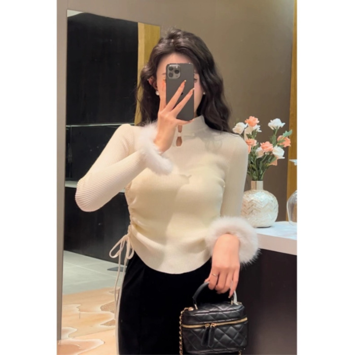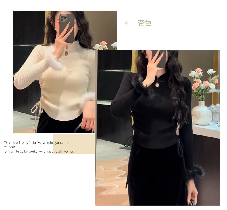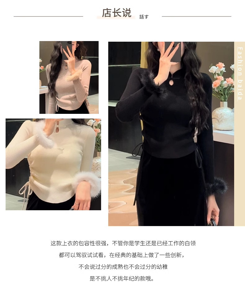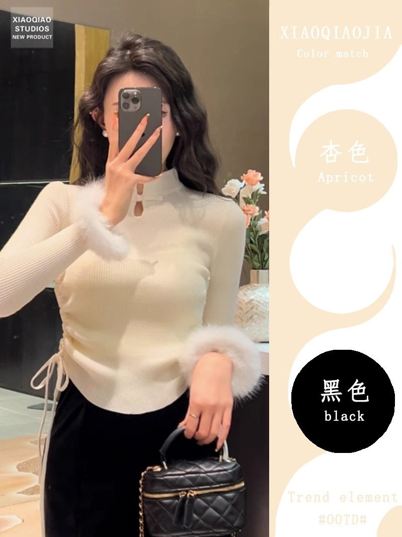 秋季修身内搭毛衣女新中式国风盘扣打底衫上衣法式毛边针织衫女装 English | 投诉