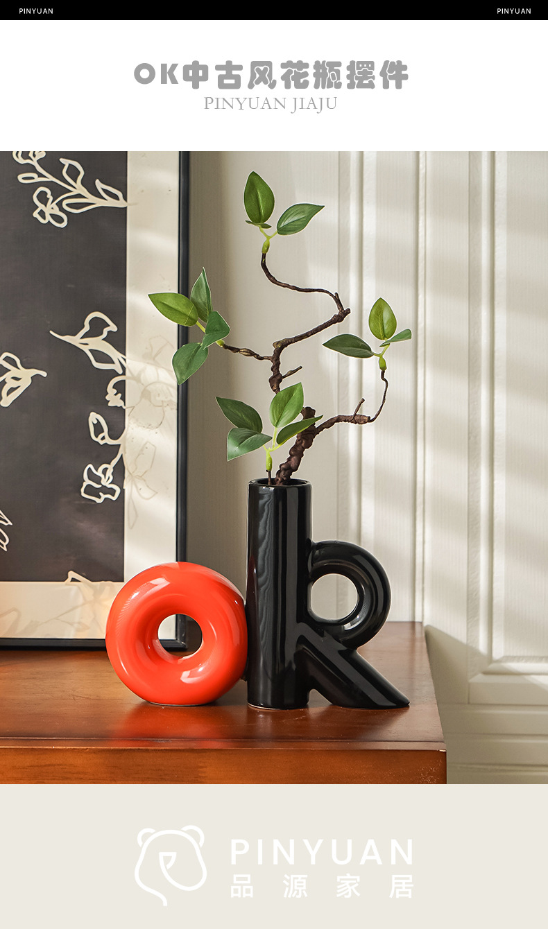 中古风OK仿真花花瓶个性高颜值陶瓷复古艺术花器民宿客厅桌面摆件 English | 投诉