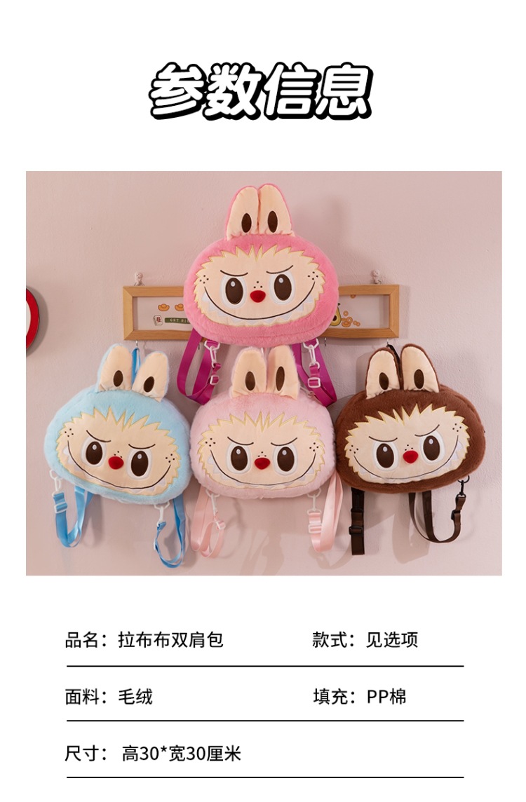 LABUBU卡通泡泡玛特毛绒包城市乐园双背包儿童拉布布双肩包外贸款 投诉
