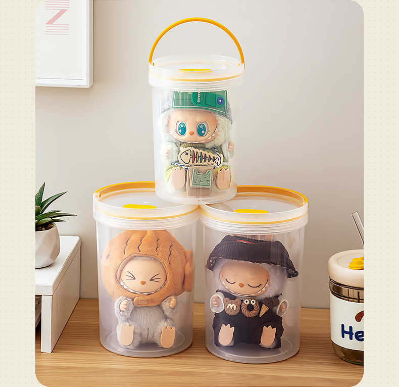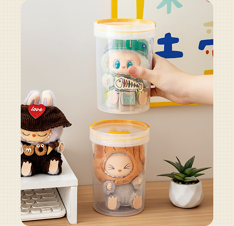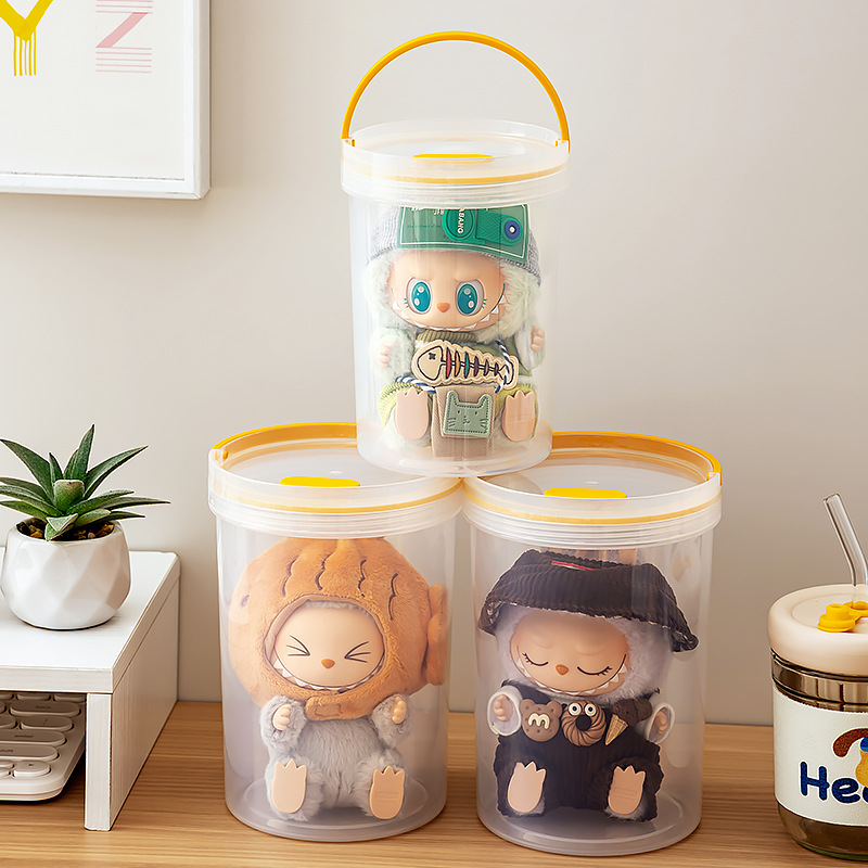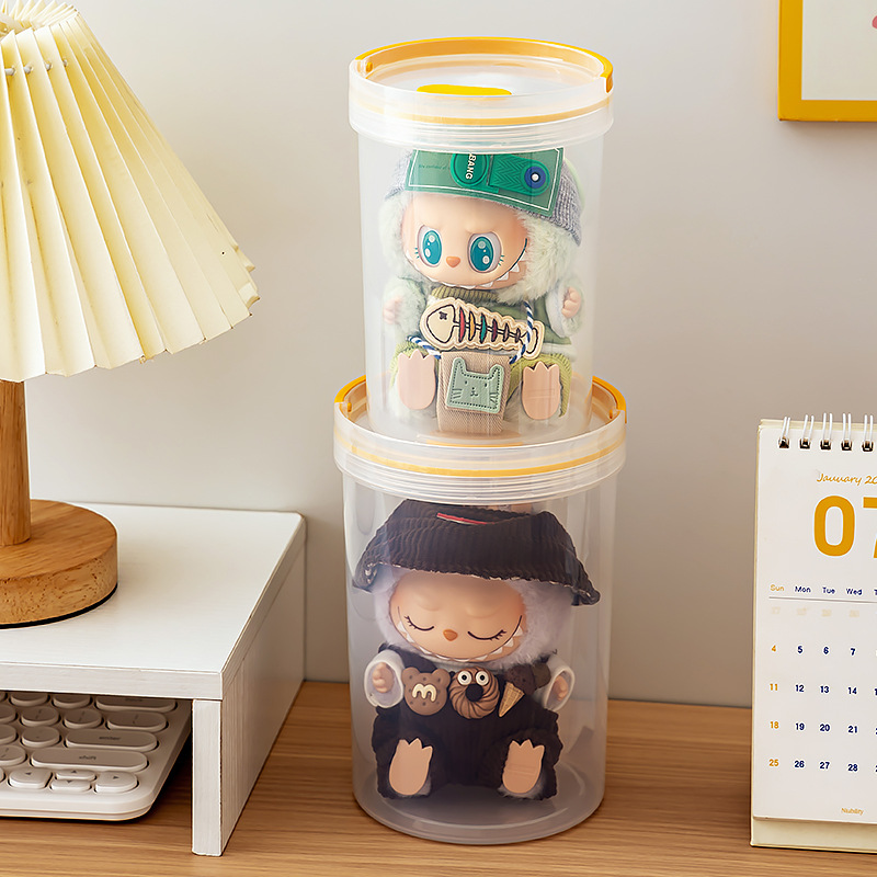 labubu展示盒泡泡玛特拉布布搪胶可乐公仔盲盒收纳盒亚克力防尘罩