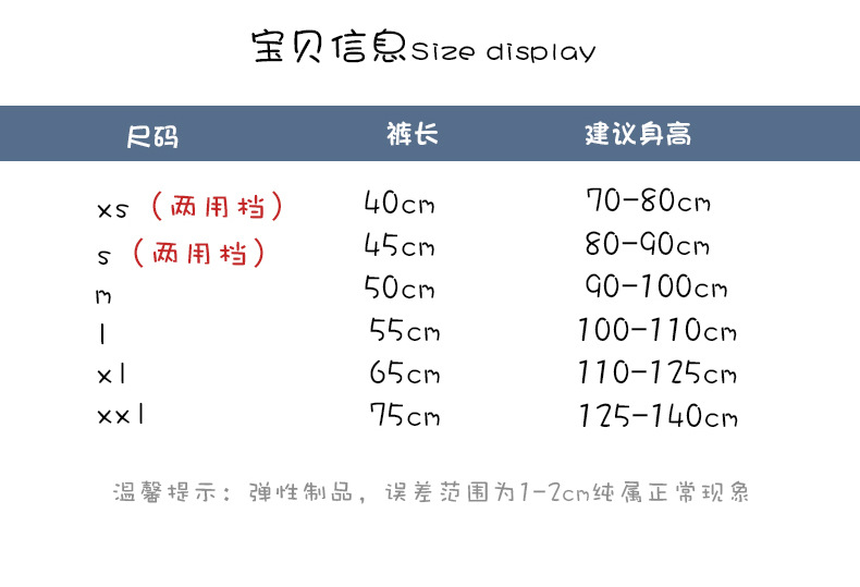 | XXL 裤长75 建议身高125-140 | ¥0 | 10000双可售 |