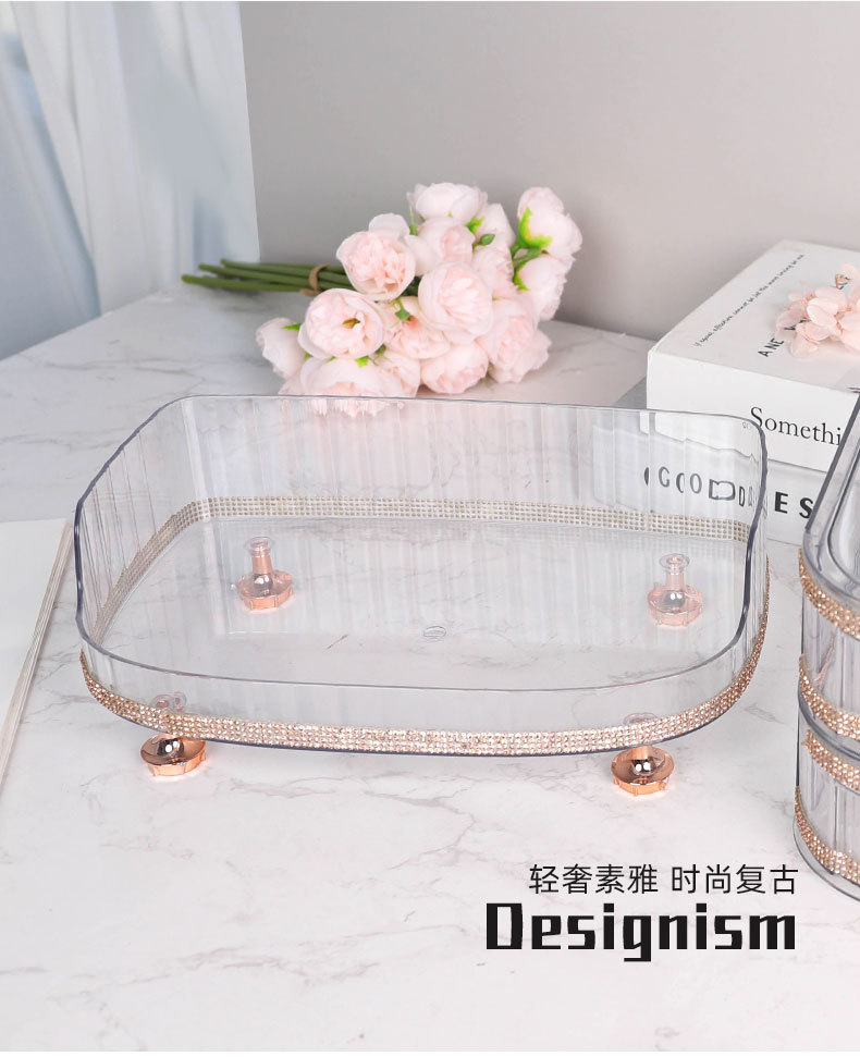 轻奢PET收纳盘客厅茶几洗手台整理盒 卫生间香薰化妆品香水置物架 English | 投诉