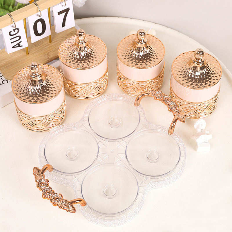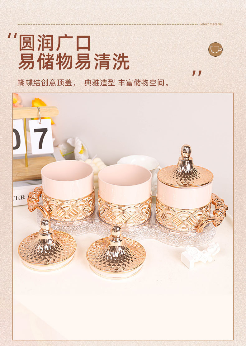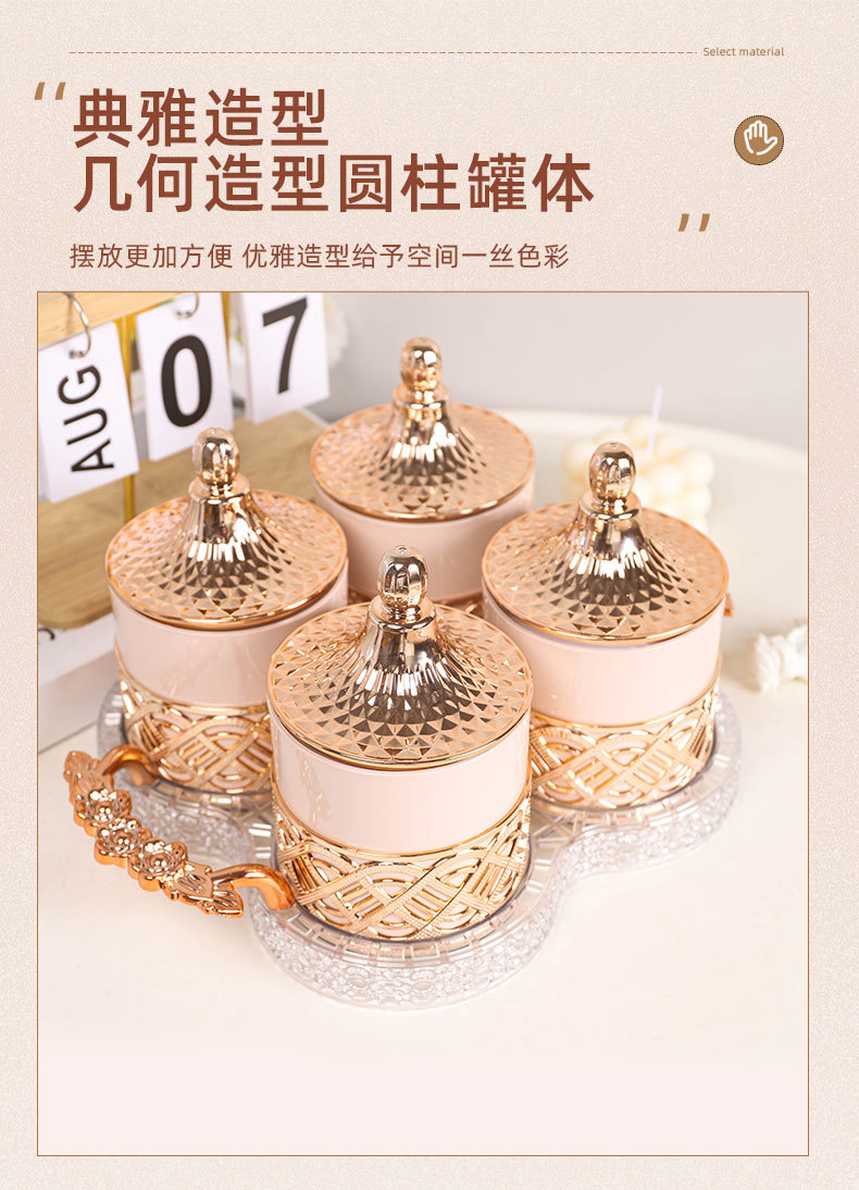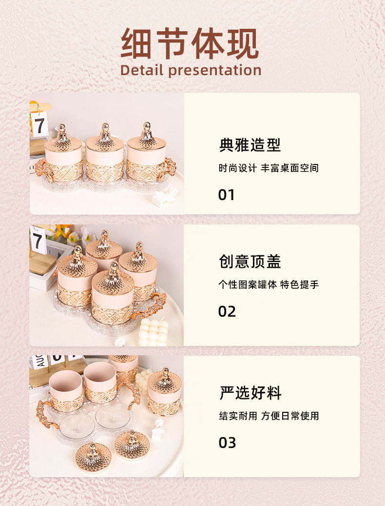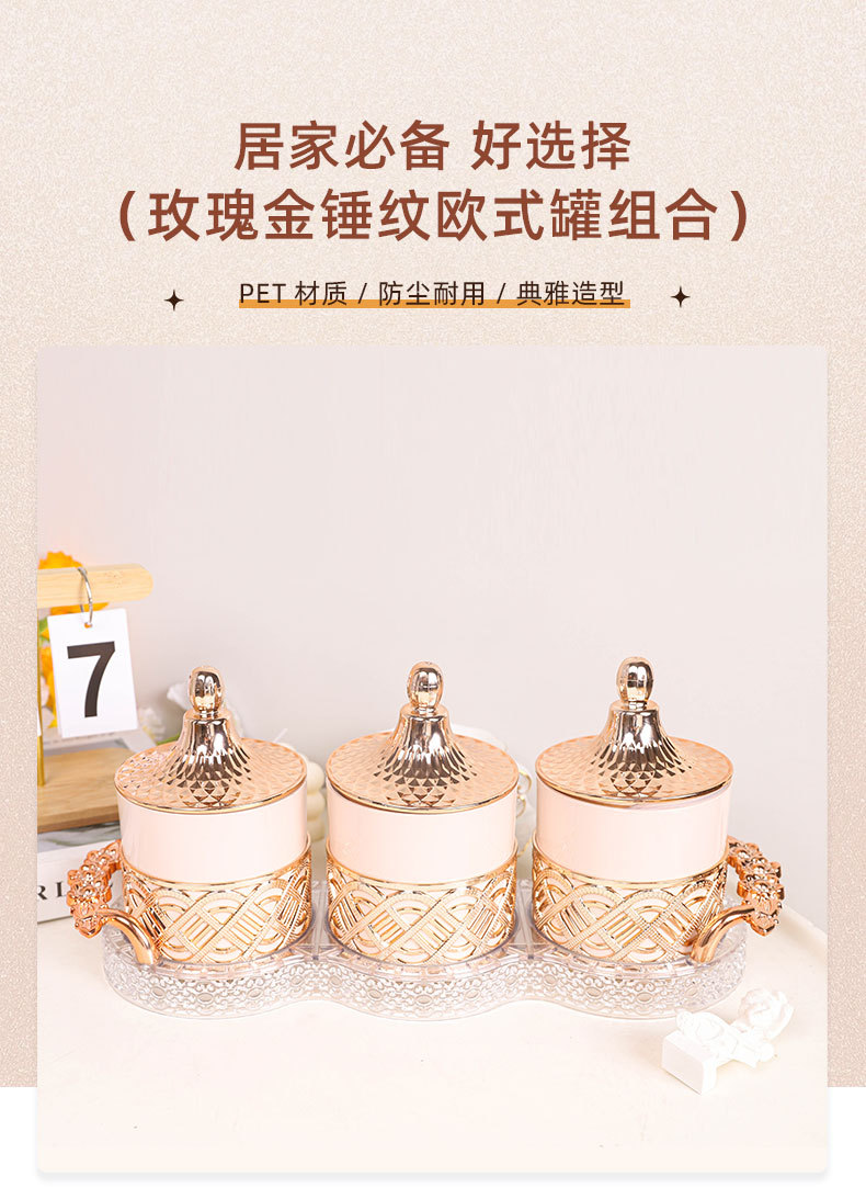 外贸欧式罐糖果罐粉色玫瑰金跨境商用储物罐家用零食干果茶叶罐 English | 投诉