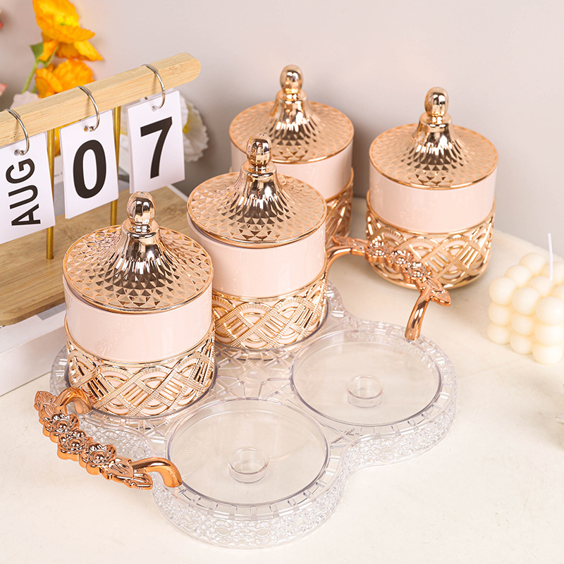 外贸欧式罐糖果罐粉色玫瑰金跨境商用储物罐家用零食干果茶叶罐