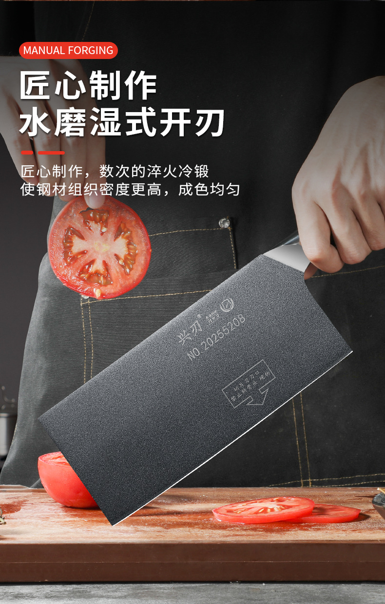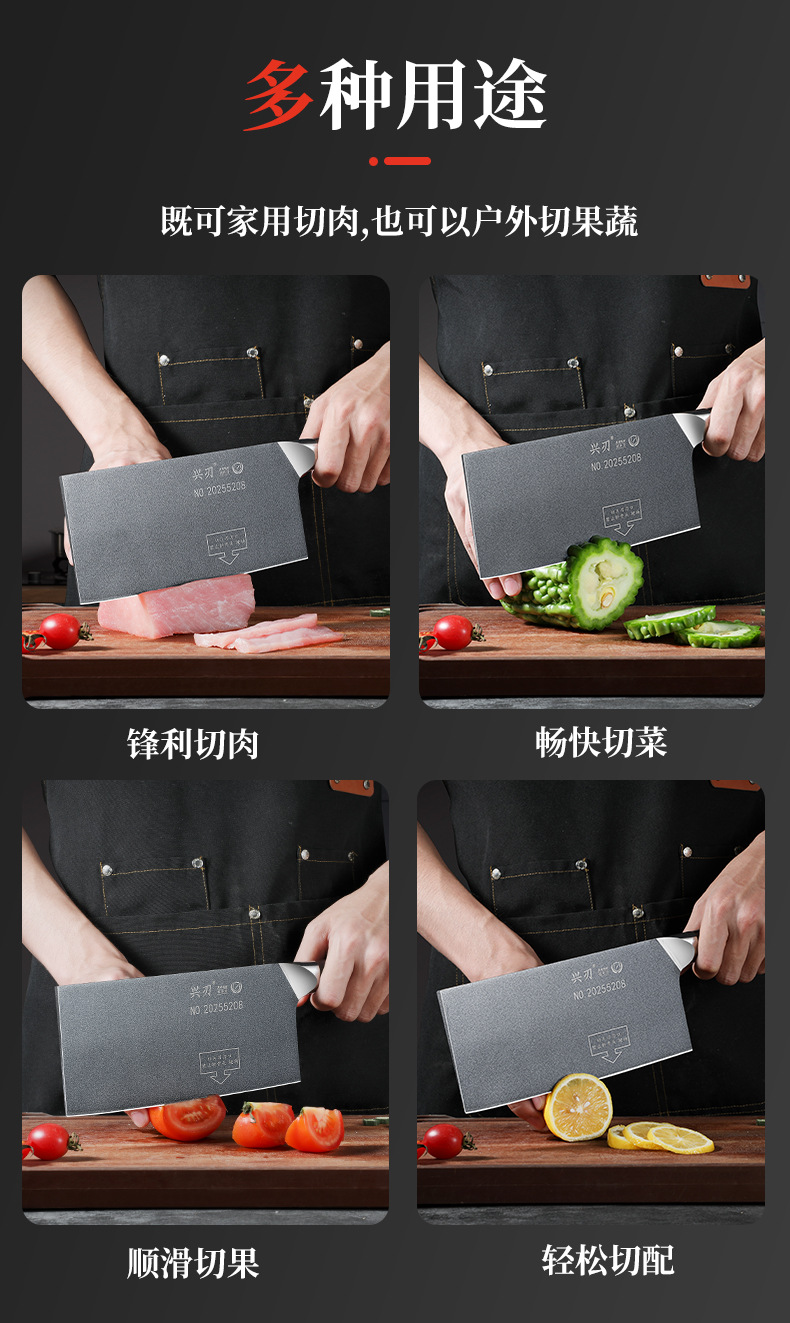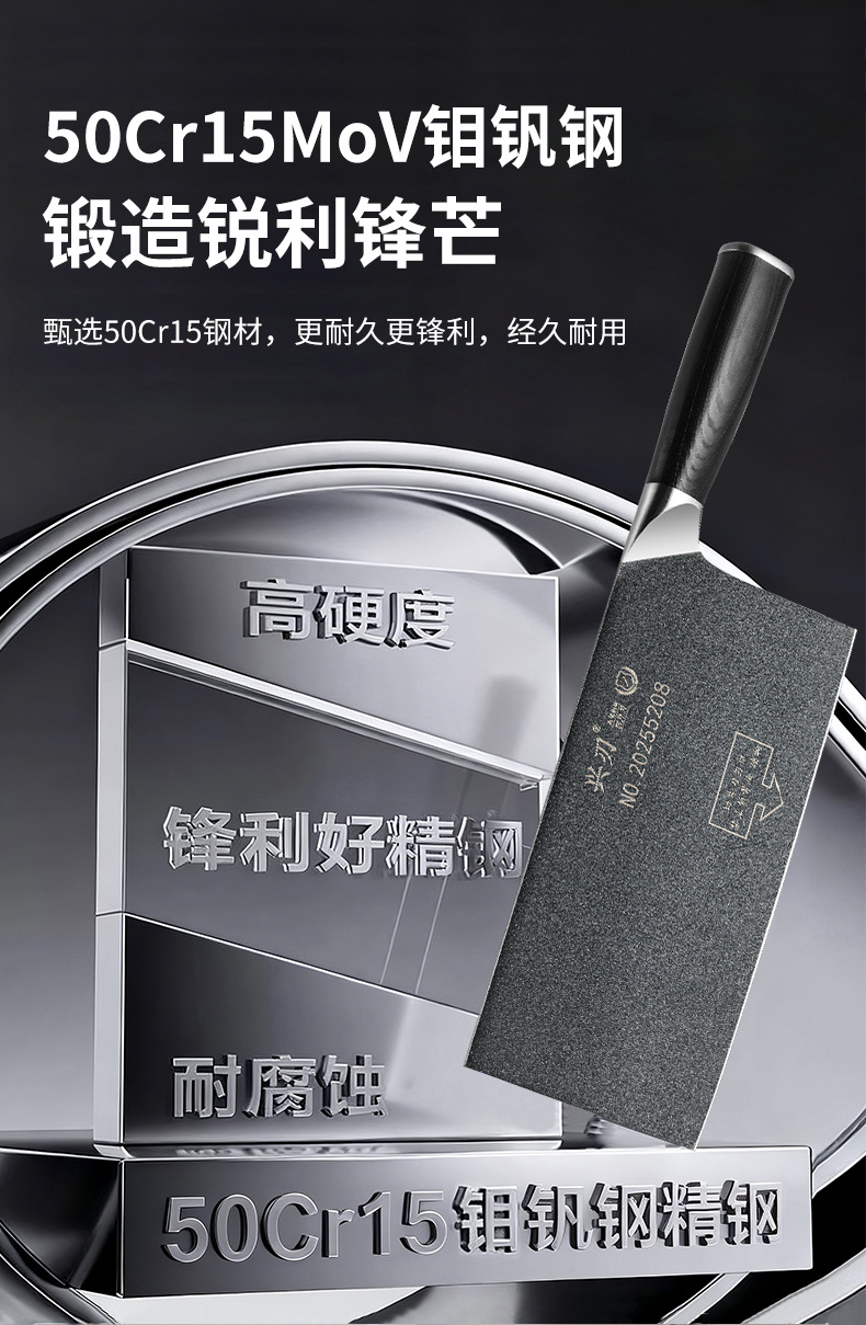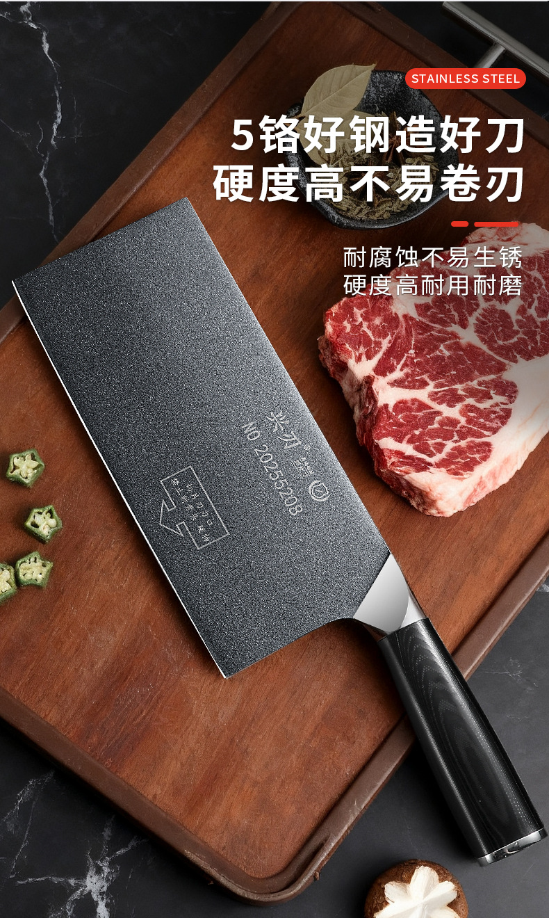 材质: 5CR15 品牌: 鑫五合 刀身材质: 5Cr系列钢 产品类别: 切片刀 工艺: 一体成型 是否进口: 否 货号: XR-CD1342 加印LOGO: 不可以 加工定制: 否 产品上市时间: 2026年春 价格段: 30-40元 是否有专利: 否 规格: 不沾钢头切片刀 有可授权的自有品牌: 否 是否跨境出口专供货源: 否 风格: 新中式 刀尖角度: 60°以上 刃长: 21 刀柄长: 12 全刀长最大值: 33
