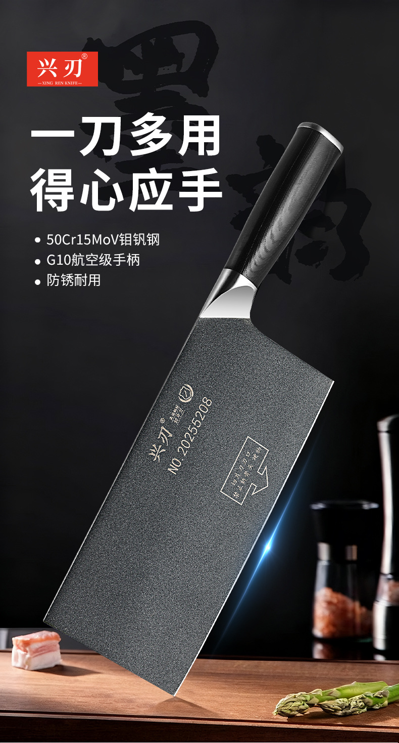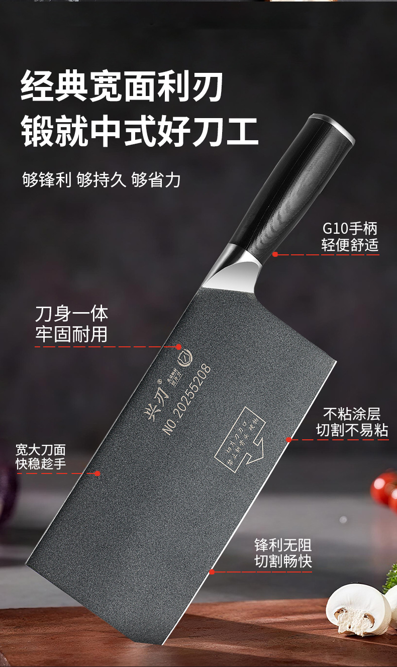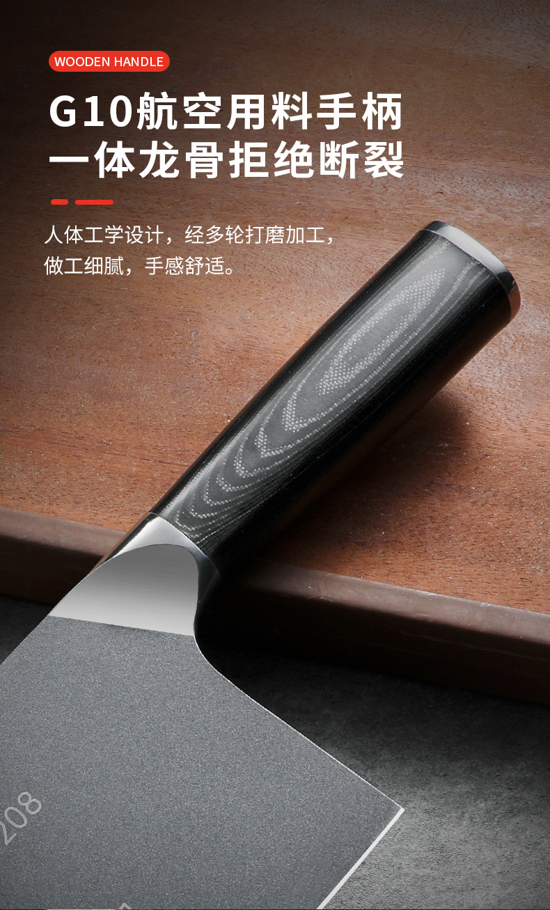 广东阳江家用厨房锋利菜刀G10手柄切菜切肉刀不沾涂层钢头切片刀
