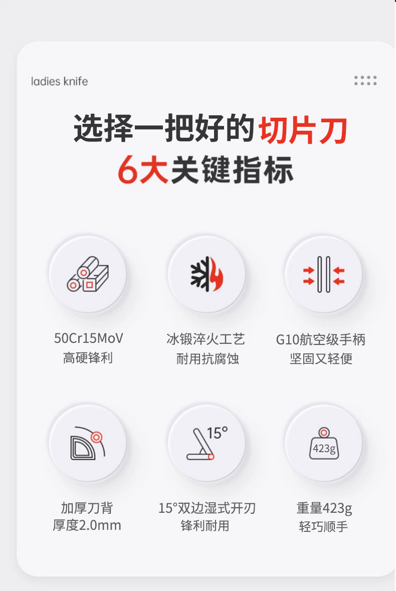 广东阳江家用厨房锋利菜刀G10手柄切菜切肉刀不沾涂层钢头切片刀 投诉