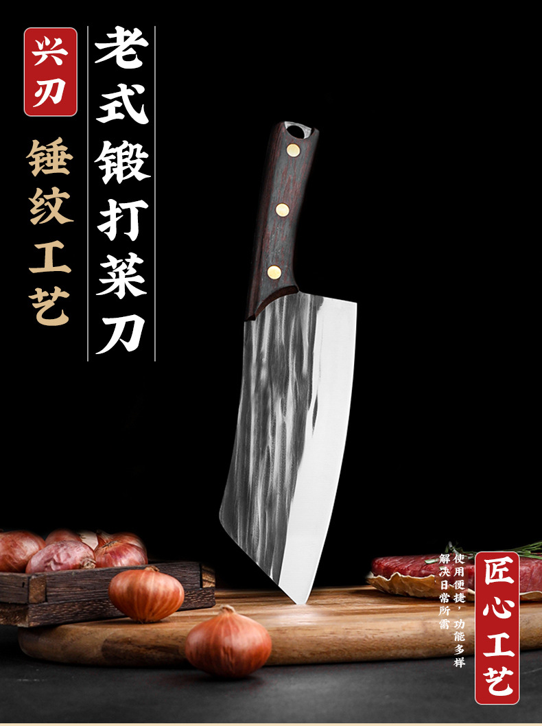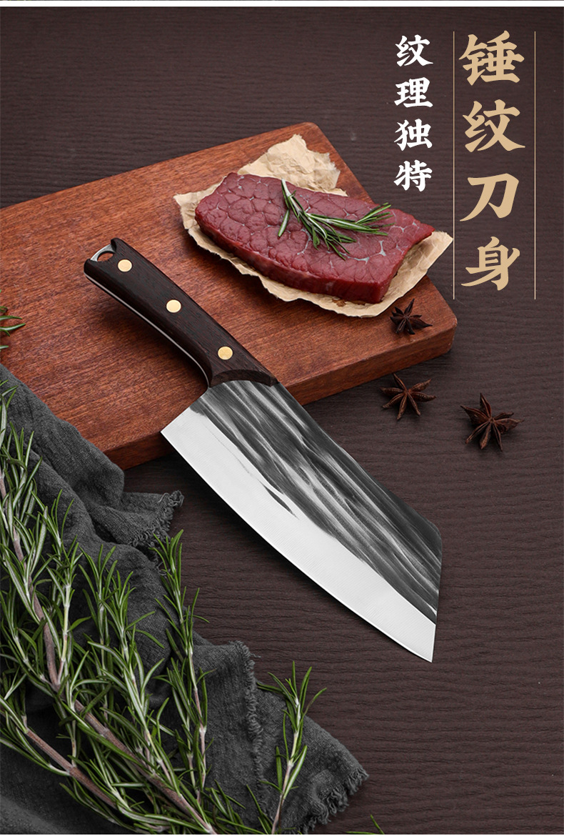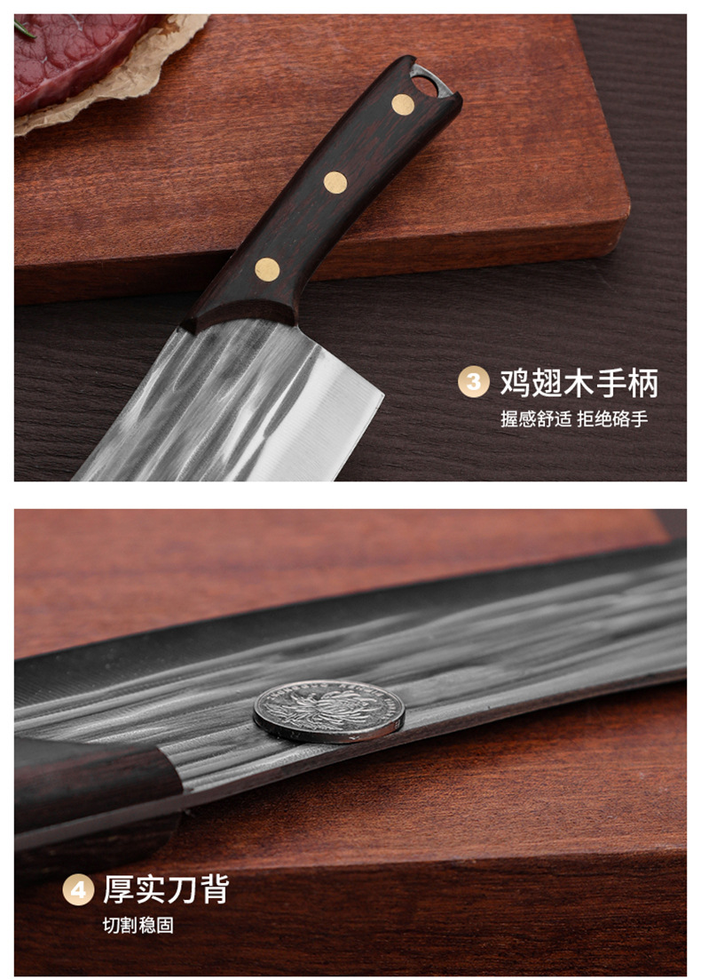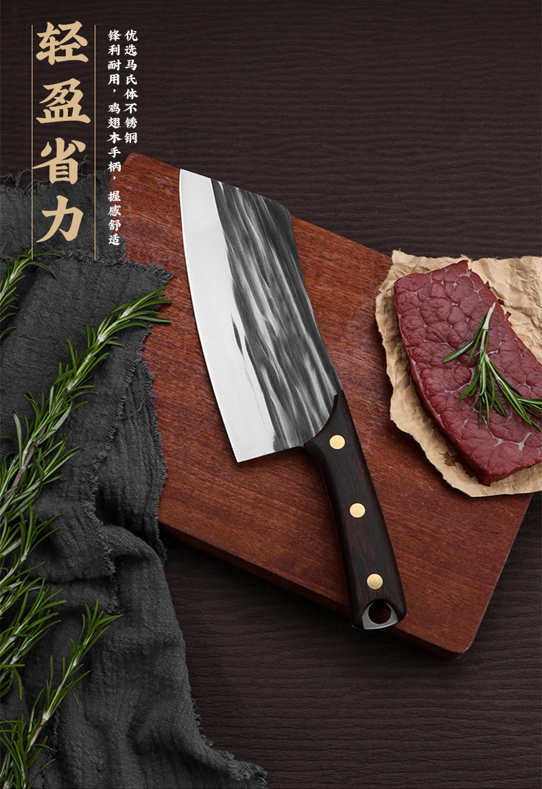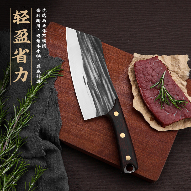 家用不锈钢轻便小厨刀锻打切片刀切水果刀跑江湖鸡翅木锋利切菜刀
