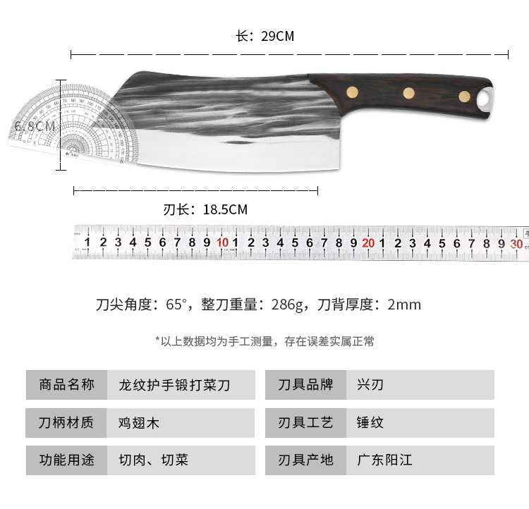 材质: 不锈钢 品牌: 兴刃 刀身材质: 3Cr系列钢 产品类别: 多用刀 工艺: 锤纹锻打 是否进口: 否 货号: XR-CD6018 加印LOGO: 可以 加工定制: 否 产品上市时间: 2021年春 价格段: 10-20元 是否有专利: 否 规格: 2厘鸡翅木柄小厨刀(logo随机发货) 有可授权的自有品牌: 否 是否跨境出口专供货源: 否 风格: 新中式 刀尖角度: 60°以上 刃长: 18.5 刀柄长: 10.5 全刀长最大值: 29