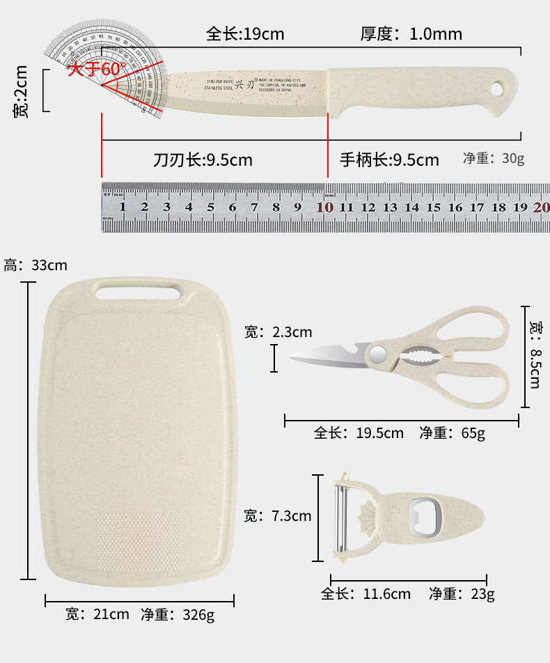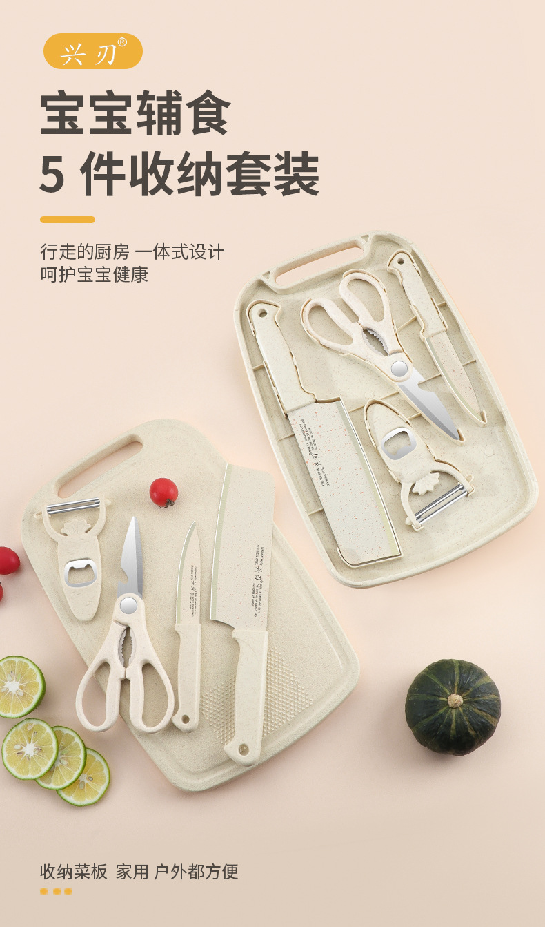 阳江厂家专供家用菜板水果刀五合一刀具组合厨房宝宝辅食菜刀套装