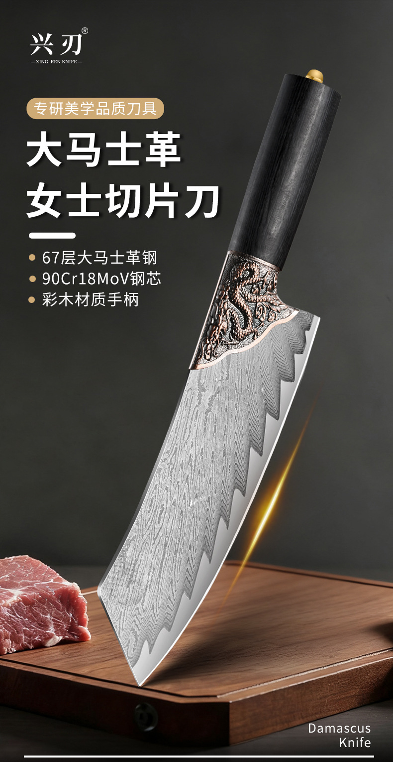材质: 9cr18 刀身材质: 9Cr系列钢 品牌: 鑫五合 工艺: 大马士革 产品类别: 菜刀 是否进口: 否 原产国/地区: 中国/广东 货号: XR-CSD1302 产地: 广东/阳江 价格段: 30-40元 是否有专利: 否 规格: 女士切片刀 主要下游平台: 亚马逊,速卖通,独立站 主要销售地区: 南美,东南亚,北美,东北亚 有可授权的自有品牌: 否 是否跨境出口专供货源: 是 风格: 新中式 颜色: 实木手柄 版权: 无 刀尖角度: 60°以上