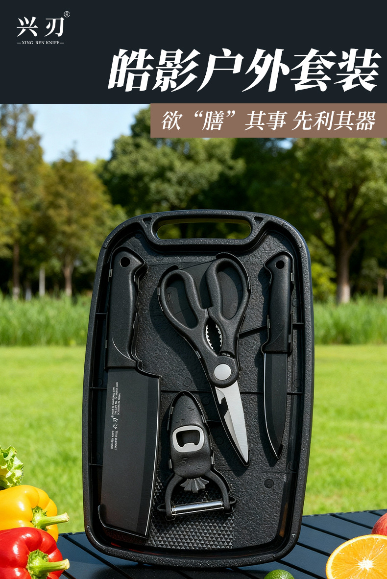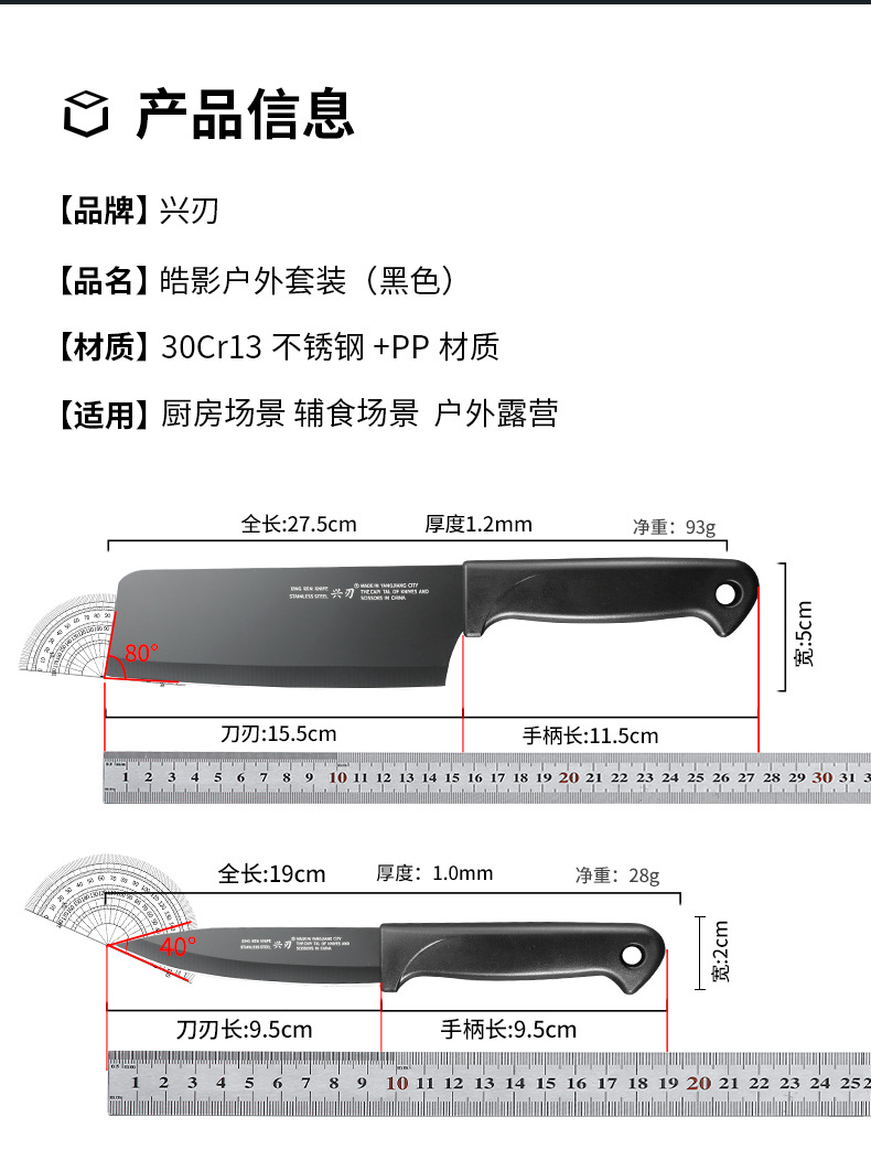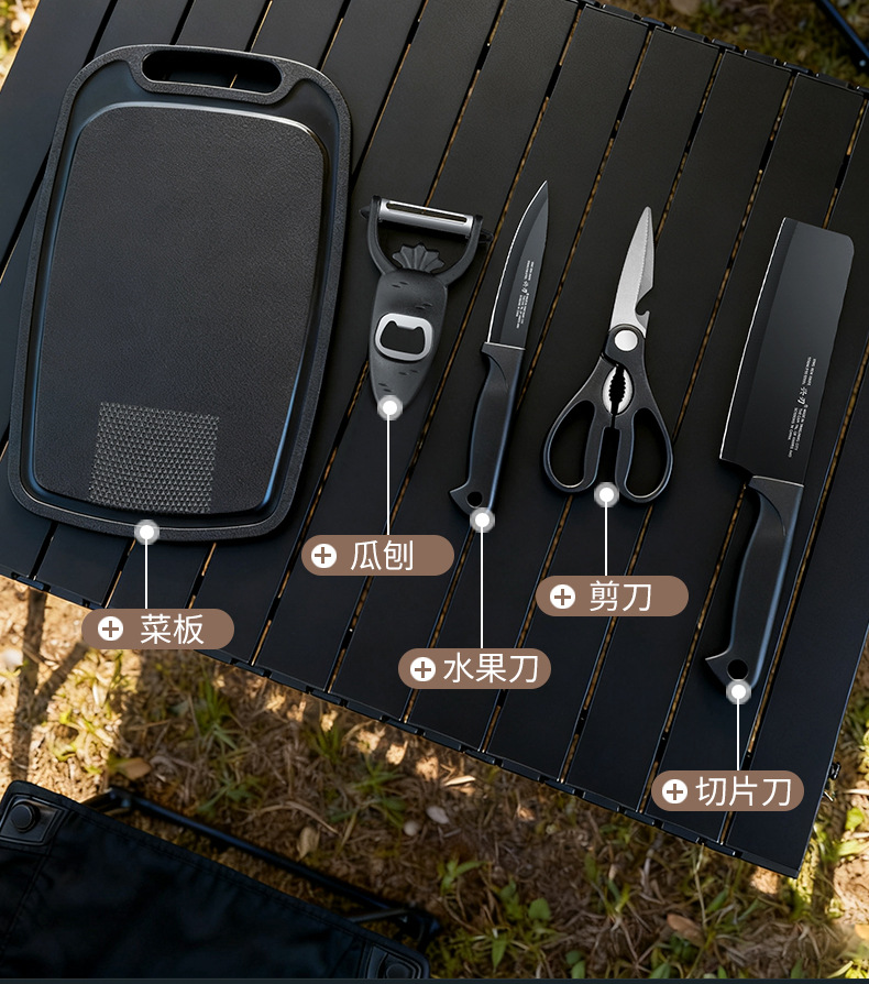 广东阳江多功能锋利刀具套装黑色宝宝辅食刀具不锈钢菜刀户外野营