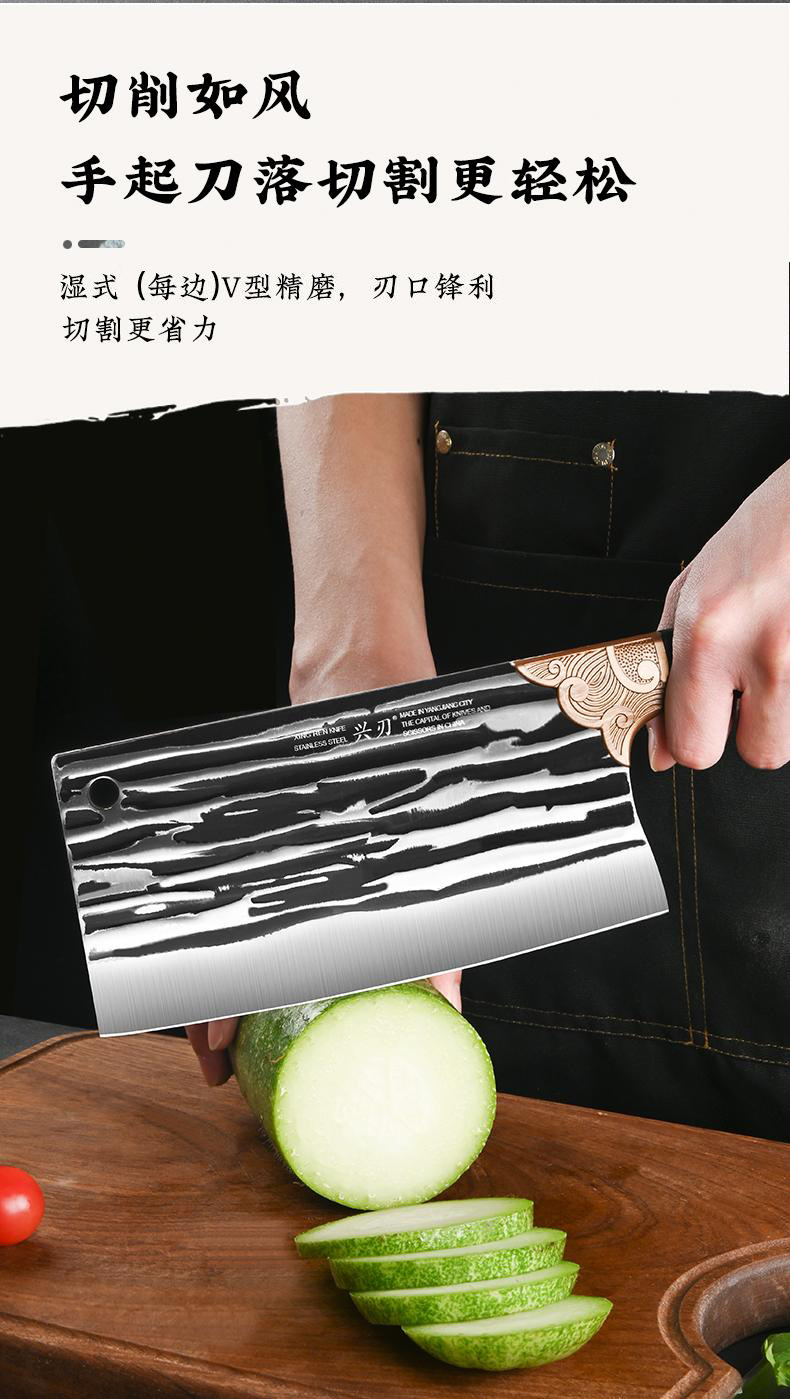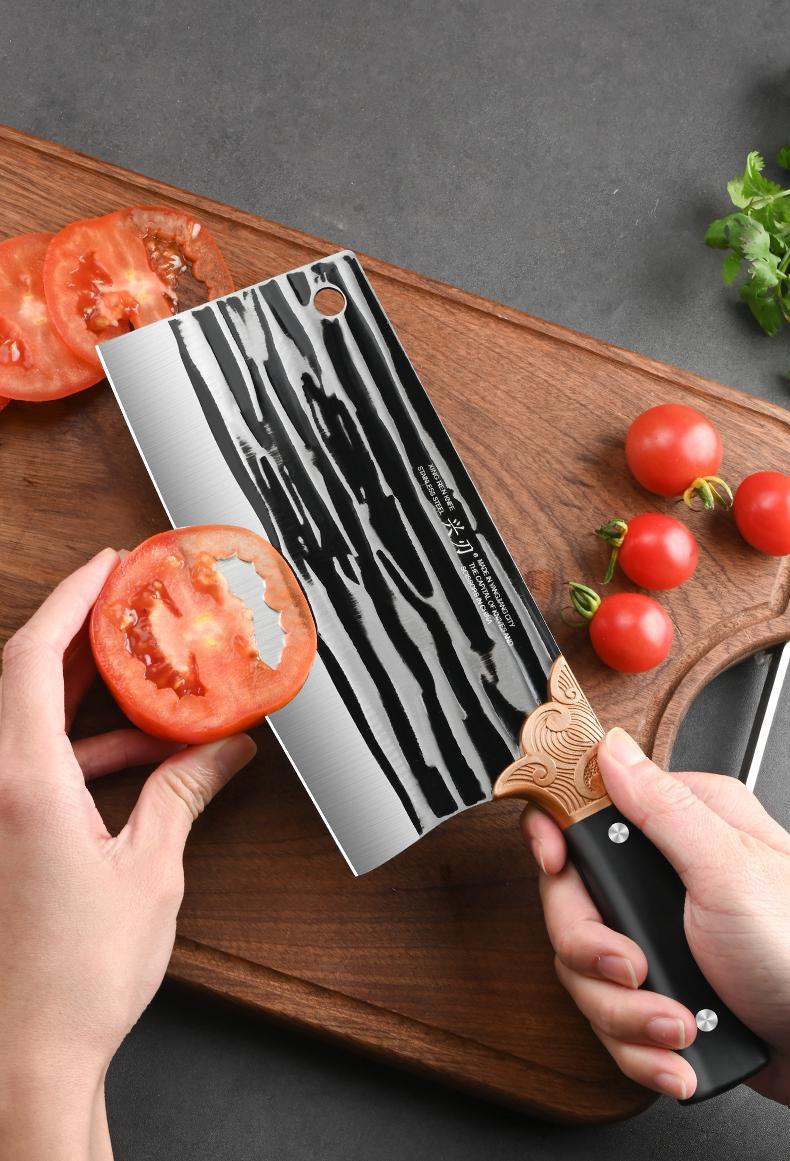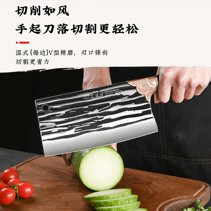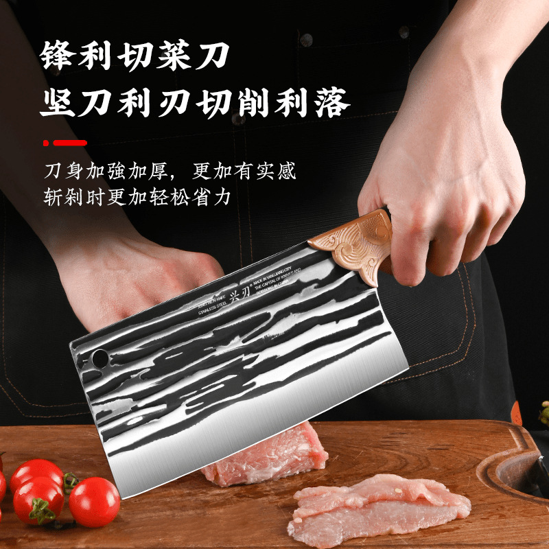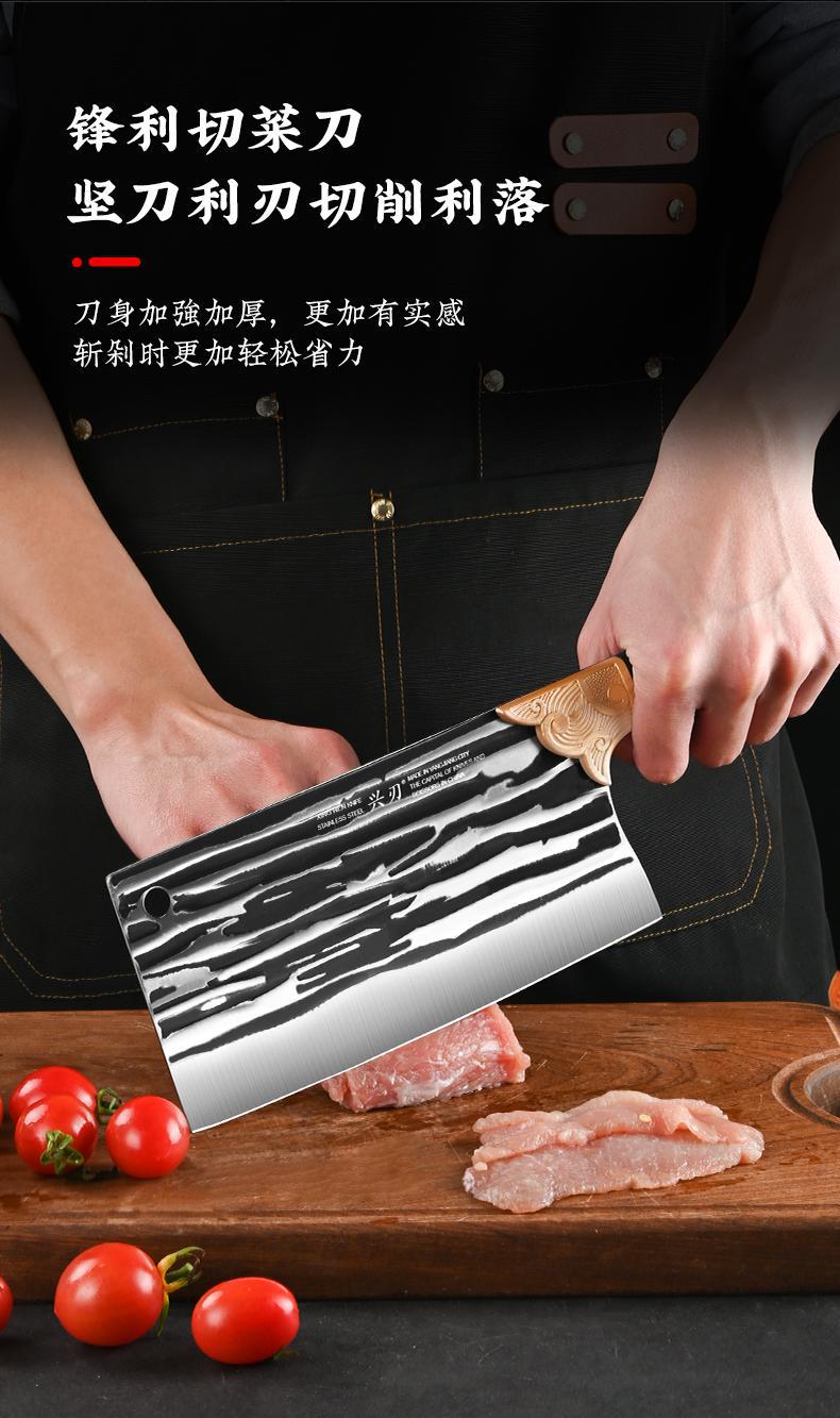 厂家专供厨房用菜刀锤纹锻打切菜刀多功能不锈钢易清洗锋利切片刀 投诉